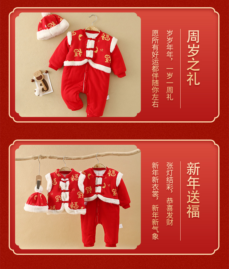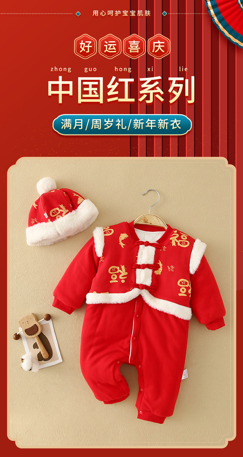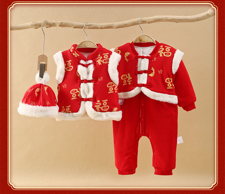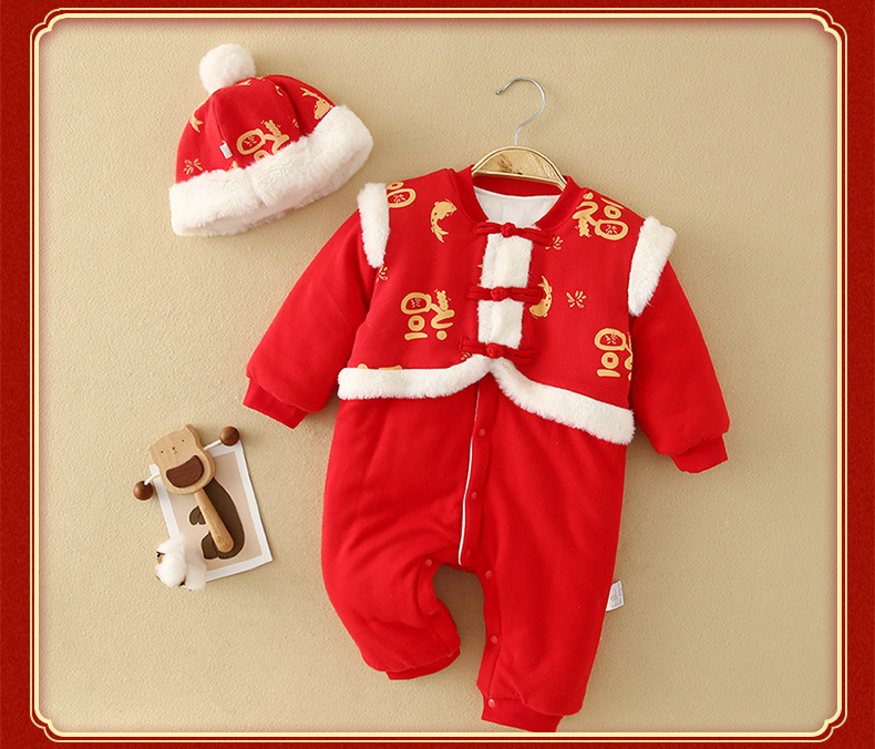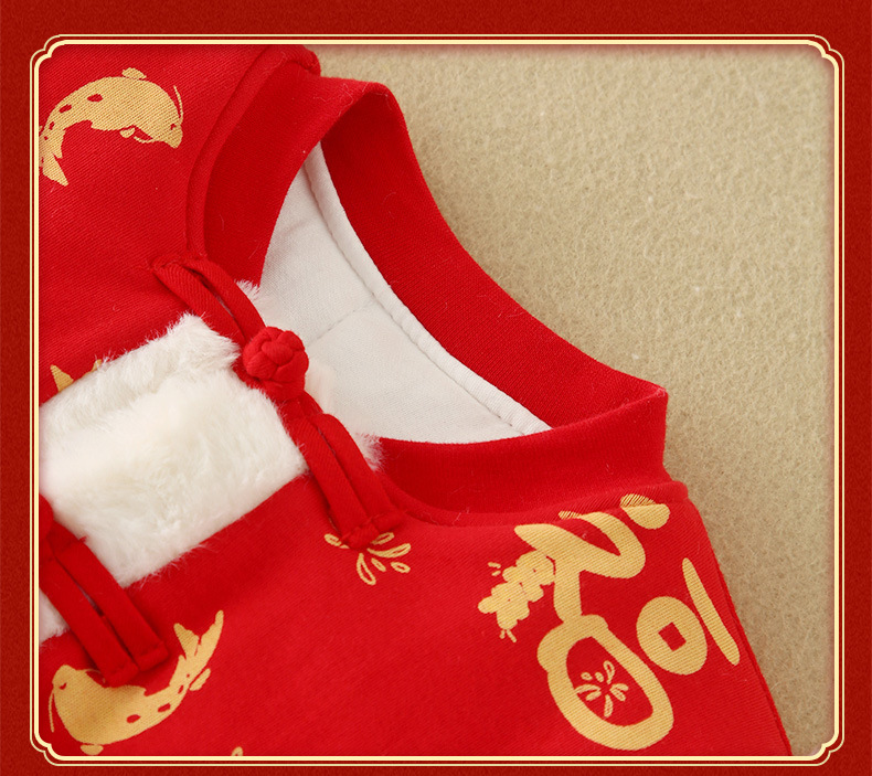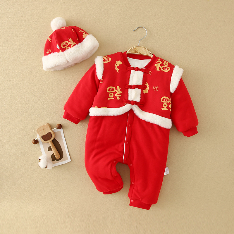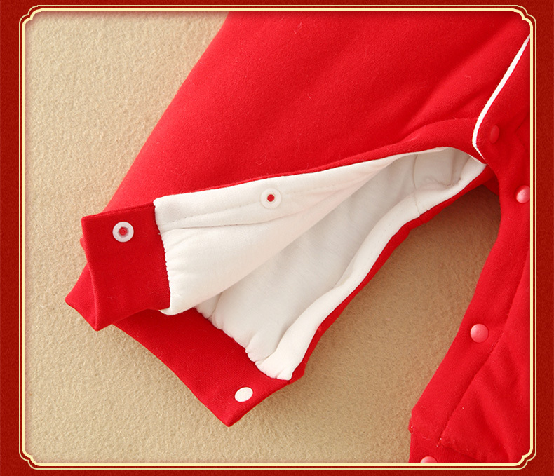 파파 아기면 패딩 조끼 가짜 투피스 신생아 큰 빨간 퀼트 점프 수트 중국 스타일 새해 복