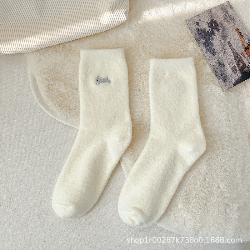 흰색 양말 여성의 가을과 겨울 두꺼운 따뜻한 중간 송아지 양말 귀여운 자수 만화 동물 일본 바닥 감금 양말