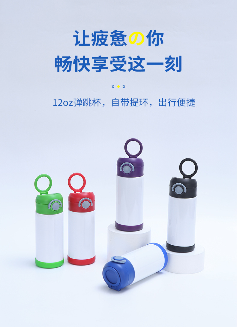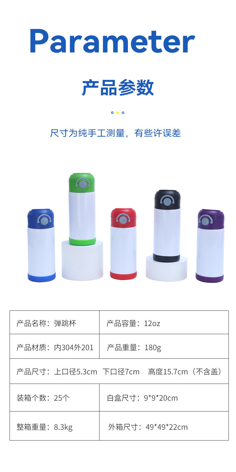 국경 간 304 스테인레스 스틸 어린이 진공 컵 12oz 휴대용 바운스 밀짚 컵 야외 휴대용 등산 스포츠 냄비
