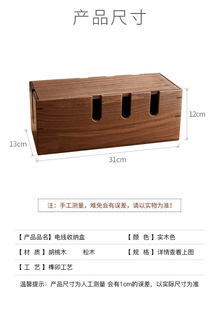 솔리드 우드 허브 플러그인 와이어 스토리지 박스 셋톱 박스 스토리지 박스 라우터 전원 코드 랙