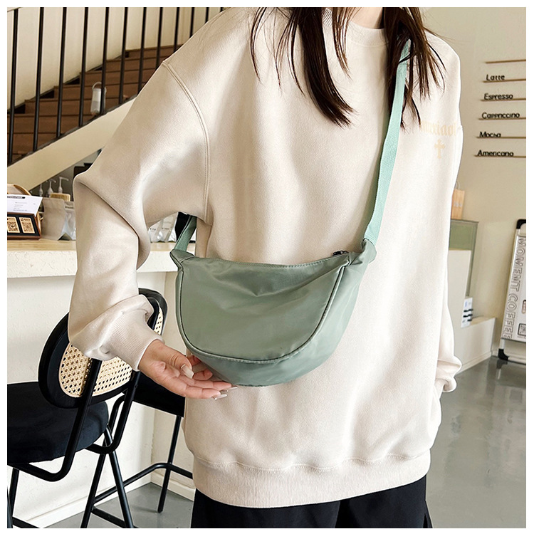 여성용 나일론 메신저 가방 2023 새로운 여성용 만두 가방 경량 작은 어깨 가방 겨드랑이 가방 간단한 어깨 캔버스 가방