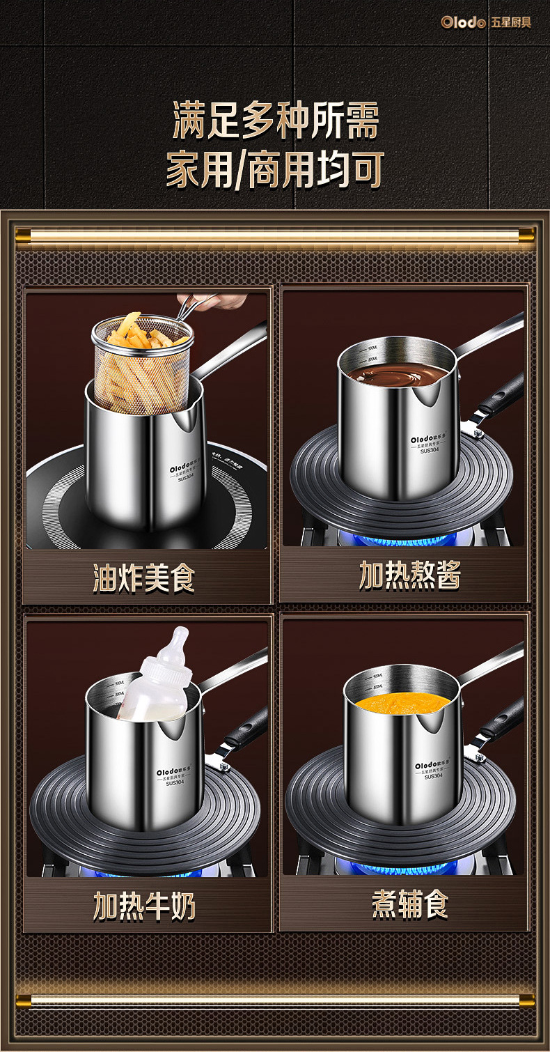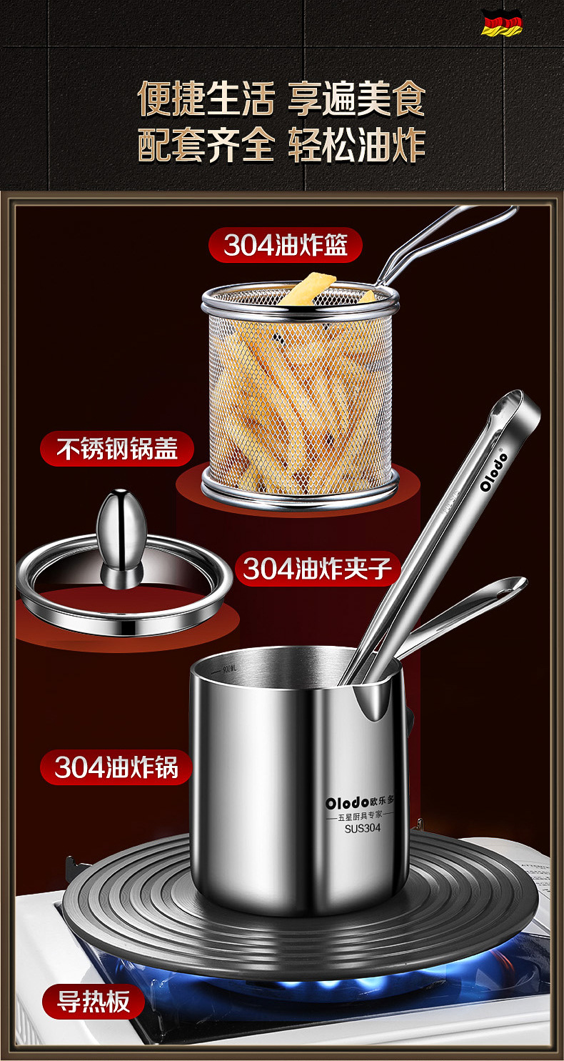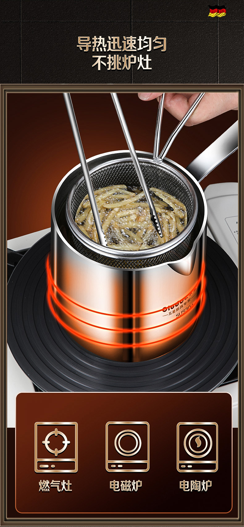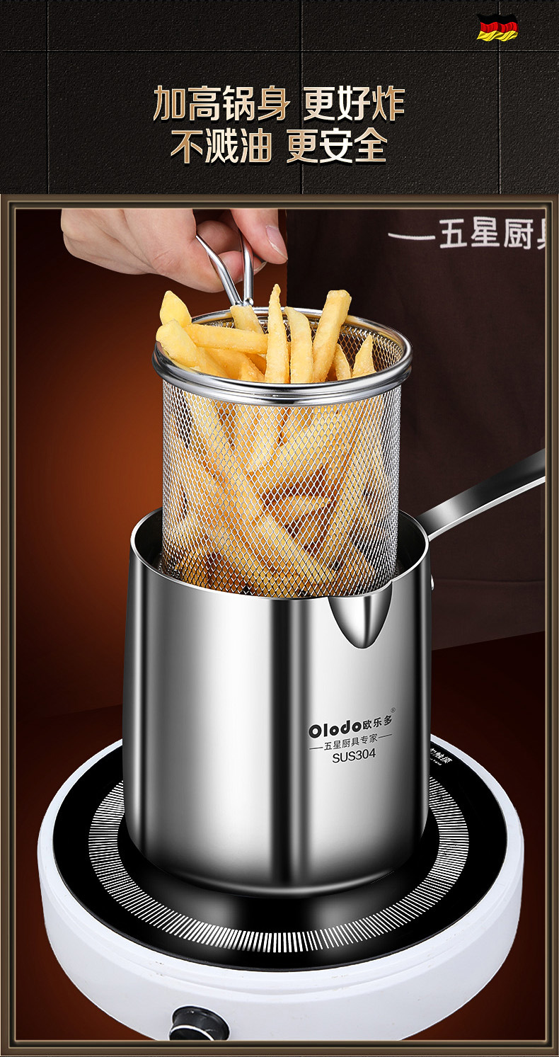 두꺼운 304 스테인레스 스틸 오일 튀는 작은 냄비 연료 효율적인 튀김 프라이어 미니 열유 드레인 오일 팬 오일 작은 냄비스토어 가기