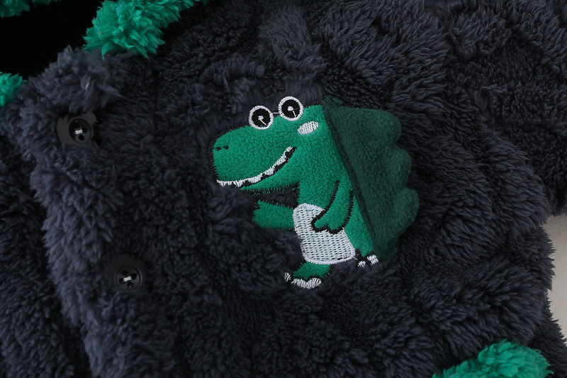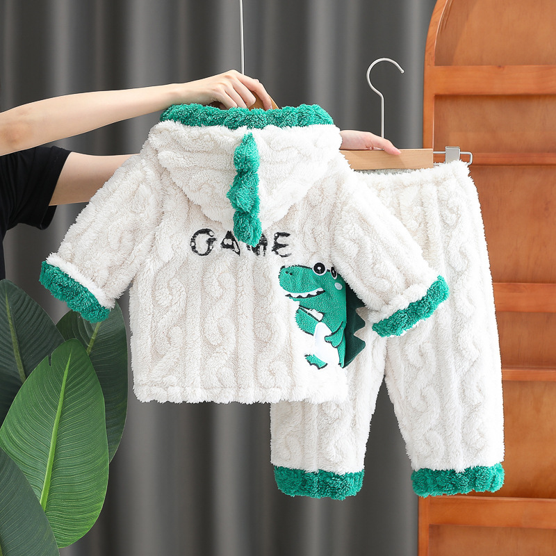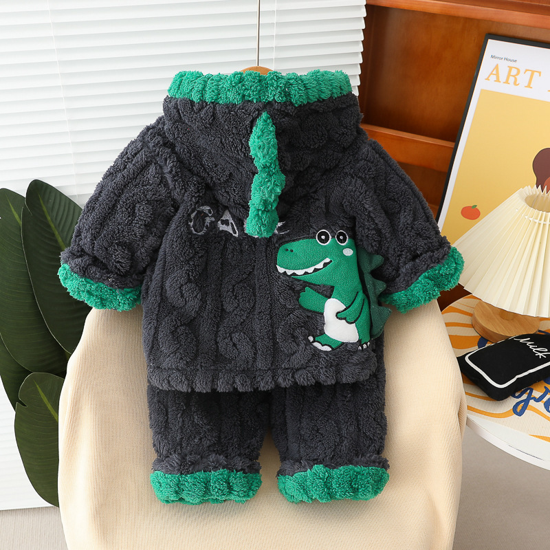 무료 배송 Yikids 어린이 겨울 의류 홈웨어 남아용 가을 겨울 공룡 플러시 가디건 잠옷 따뜻한 아동복