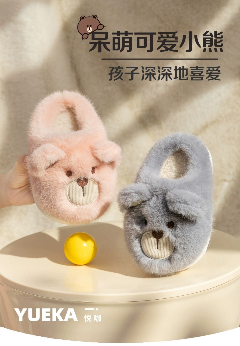 곰 어린이 면화 슬리퍼 겨울 신발 미끄럼 방지 아기 실내 소년과 소녀 따뜻한 귀여운 홈 면화 슬리퍼 도매스토어 가기
