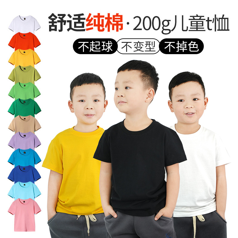 순수한 흰색 반팔 티셔츠 인쇄 로고 소년 여름 소녀 아기 검은 색 클래스 옷 순수한면 반소매 탑 diy스토어 가기