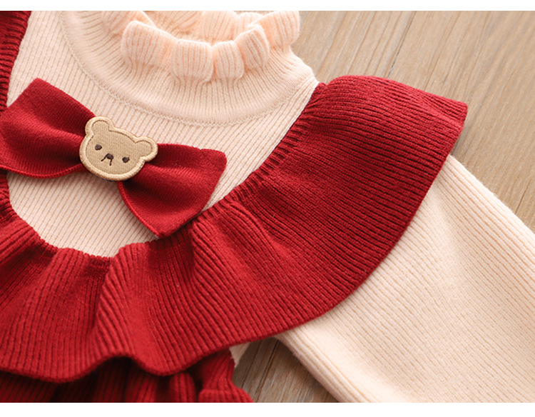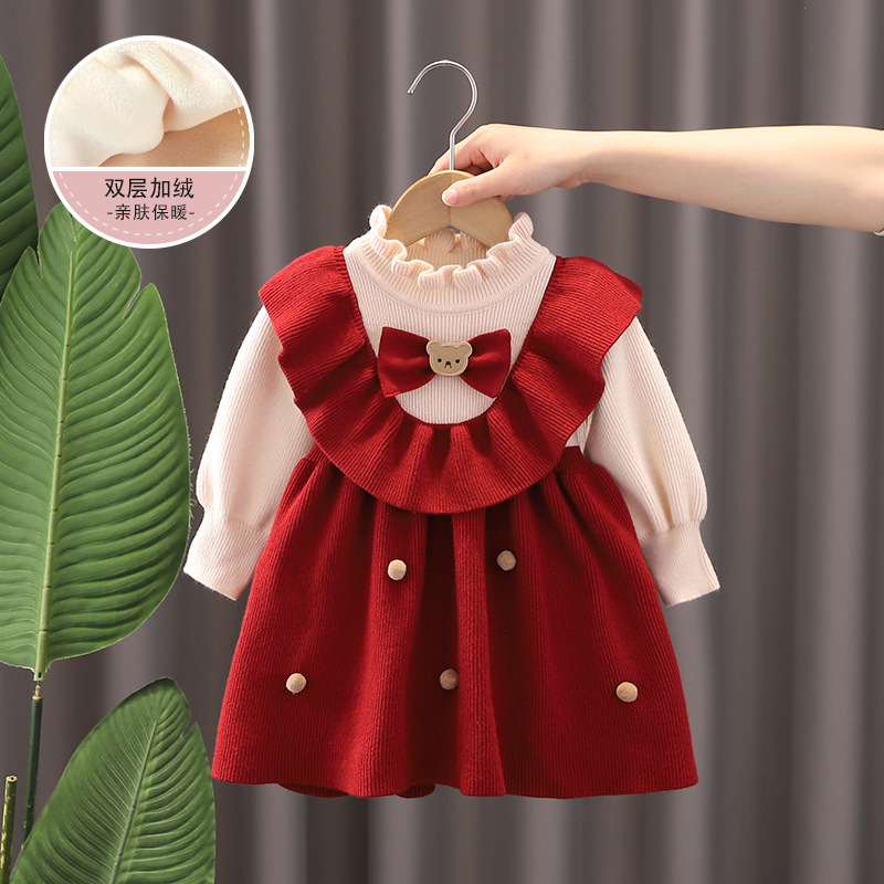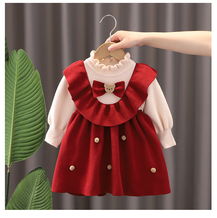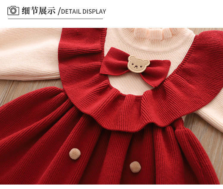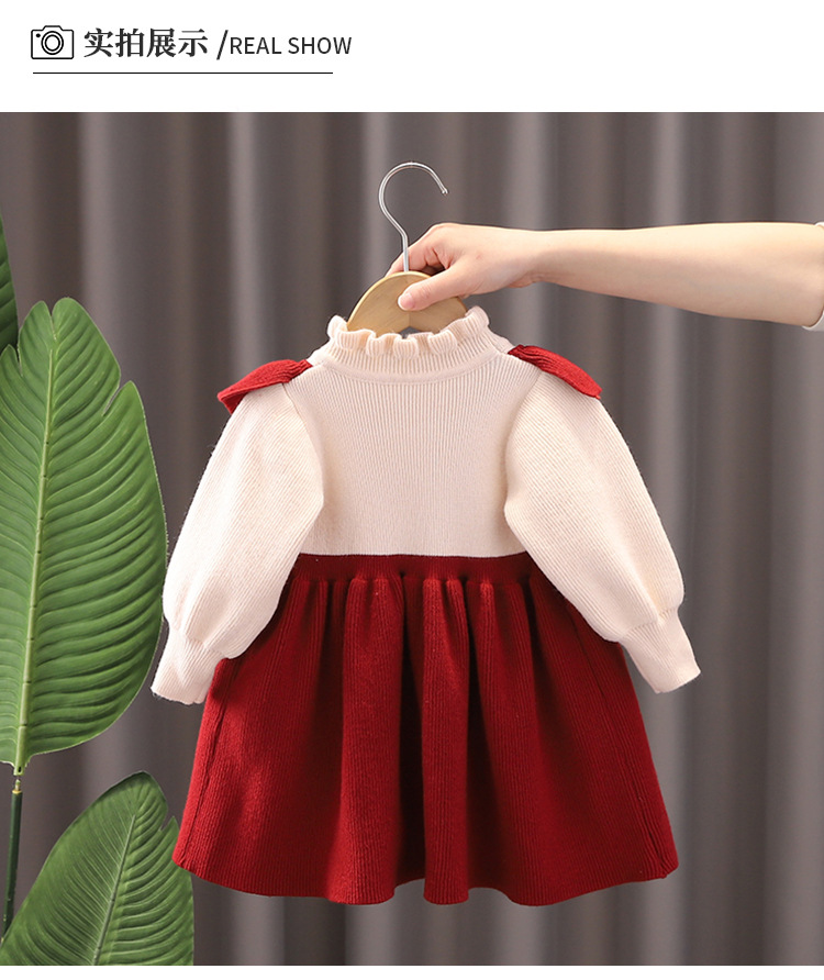 소녀 니트 원피스 가을과 겨울 서양식 원피스 붉은 새해 인사말 원피스 공주 원피스 아기 소녀의 크리스마스 아동복