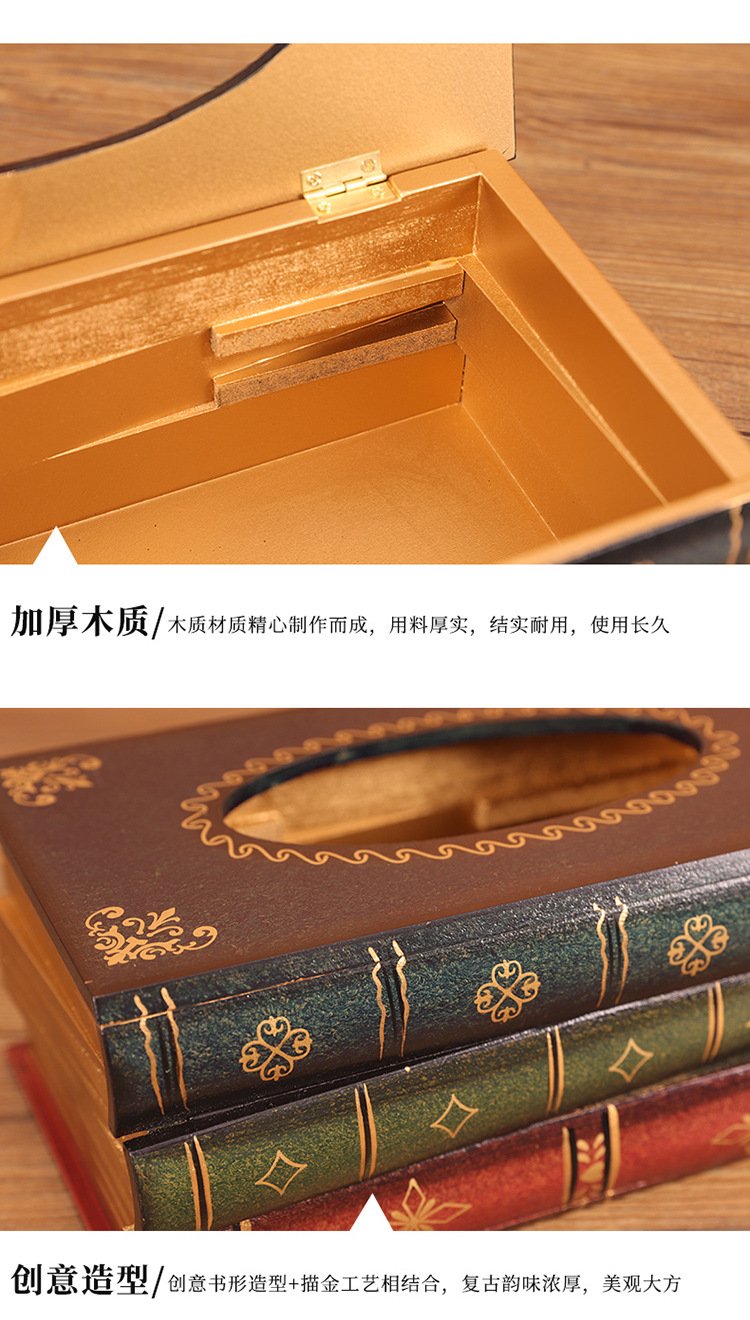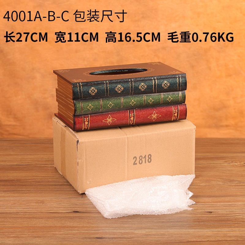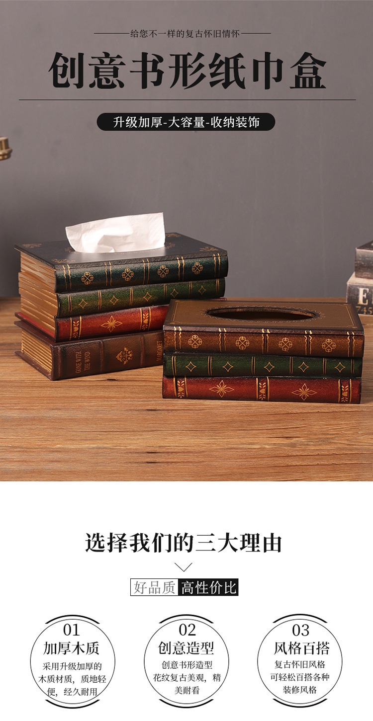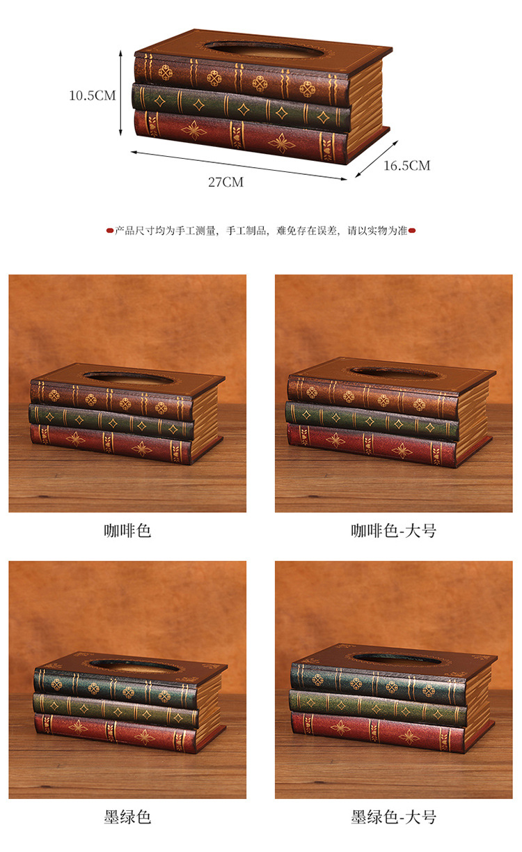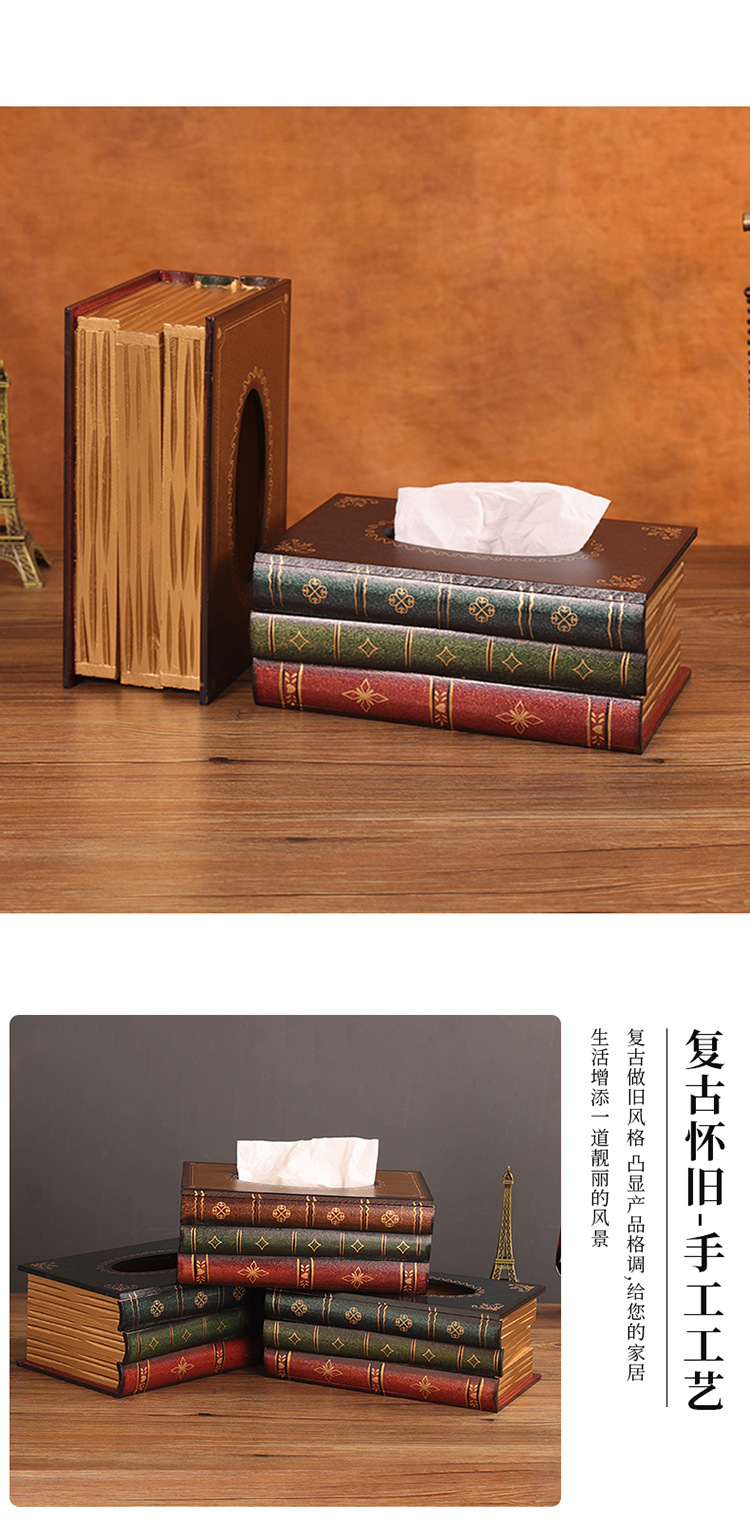 유럽식 복고풍 손으로 그린 책 모양의 티슈 박스 나무 시뮬레이션 책 티슈 박스 레스토랑 플러스 사이즈 티슈 스토리지