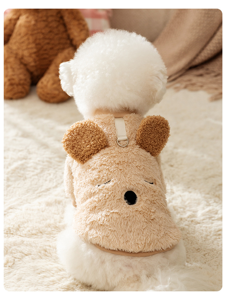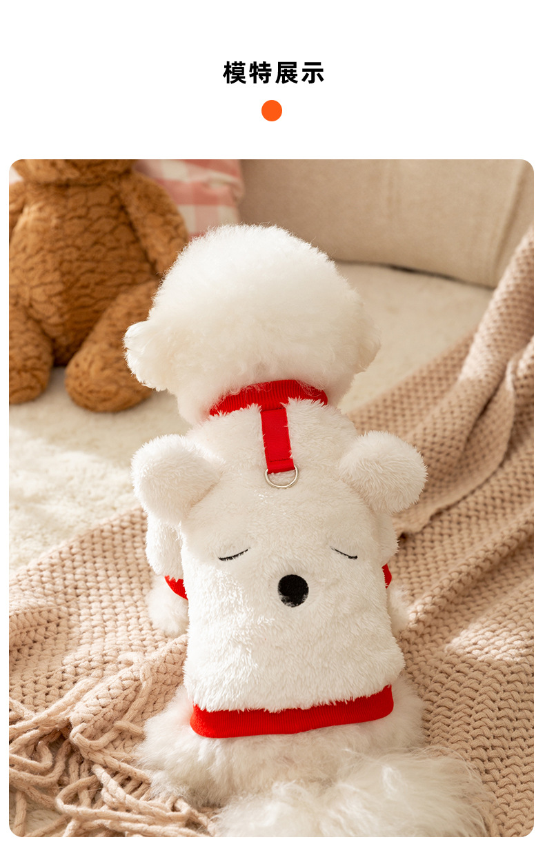 가을과 겨울 개 귀여운 곰 북극 벨벳 견인 양털 중형 및 작은 개 한국식 고양이 두 다리 애완 동물 옷스토어 가기