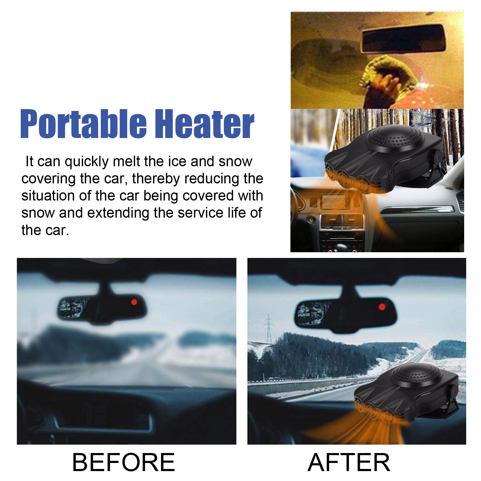 Rayhong 자동차 해동 스노우 데미스터 자동차 유리 휴대용 탈빙 제빙 빠른 눈 녹는 히터
