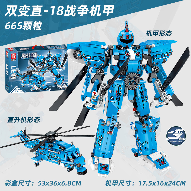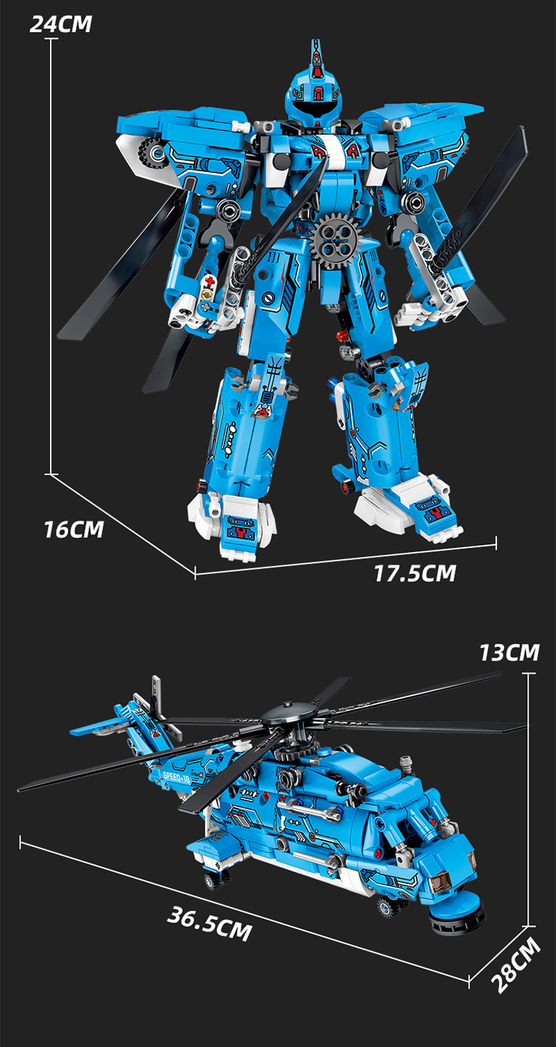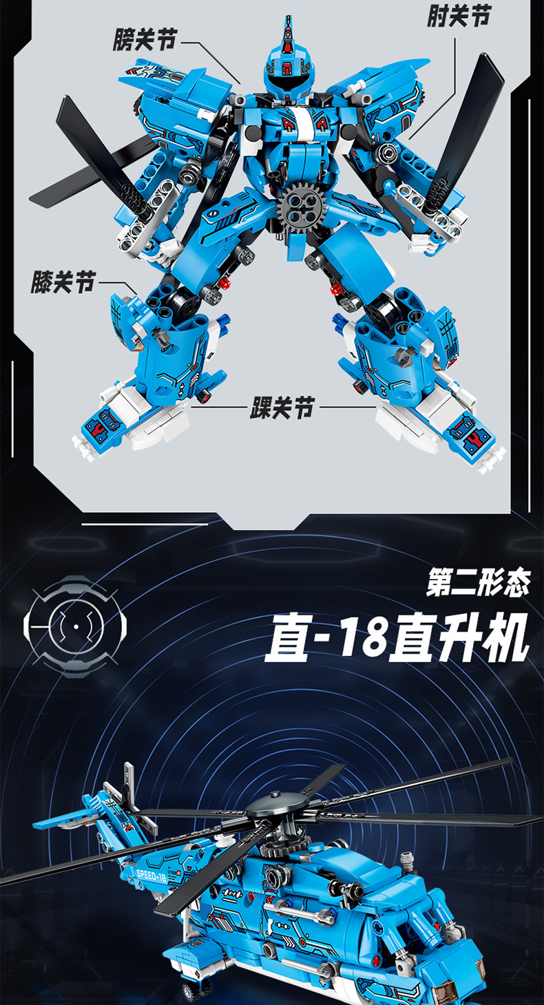Le Yi Building Blocks Military Series 헬리콥터 변형 로봇 경찰 믹스 어린이 장난감 소년 국경 상품