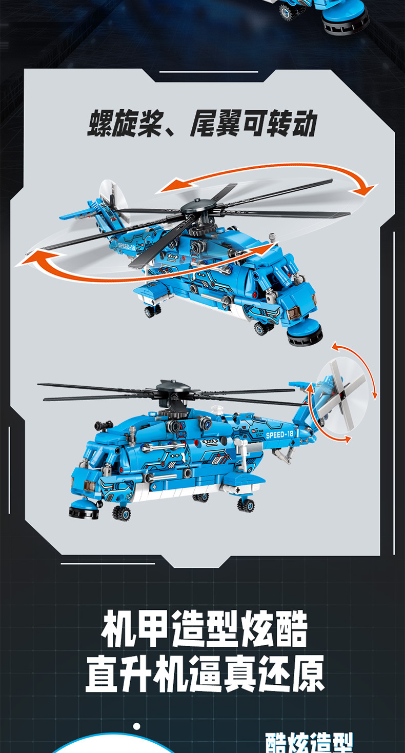 Le Yi Building Blocks Military Series 헬리콥터 변형 로봇 경찰 믹스 어린이 장난감 소년 국경 상품스토어 가기