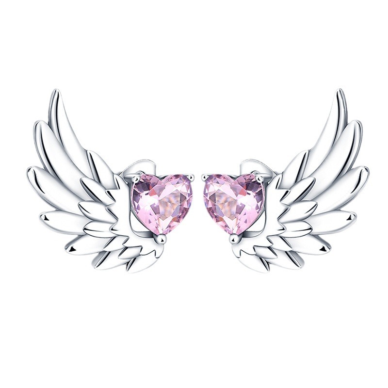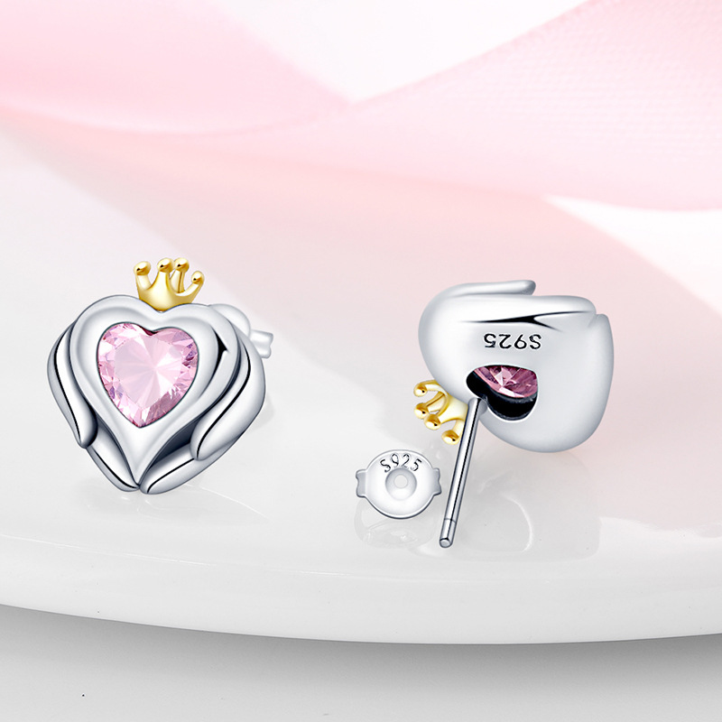 S925 스털링 실버 귀걸이 하트 모양의 날개 왕관 귀걸이 패션 간단한 발렌타인 데이 선물 크로스 국경 핫 세일 도매스토어 가기