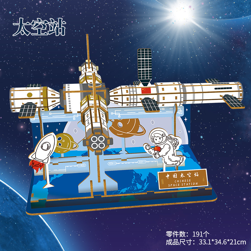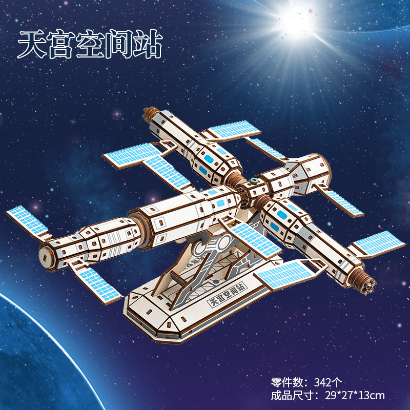 항공 우주 과학 기술 수제 나무 3D 퍼즐 모델 우주 정거장 Beidou 위성 어린이 장난감 도매스토어 가기