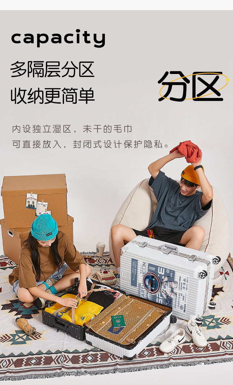 새로운 20/28 인치 남녀 수하물 대용량 음소거 유니버설 휠 아동 및 어머니 암호 알루미늄 프레임 가방