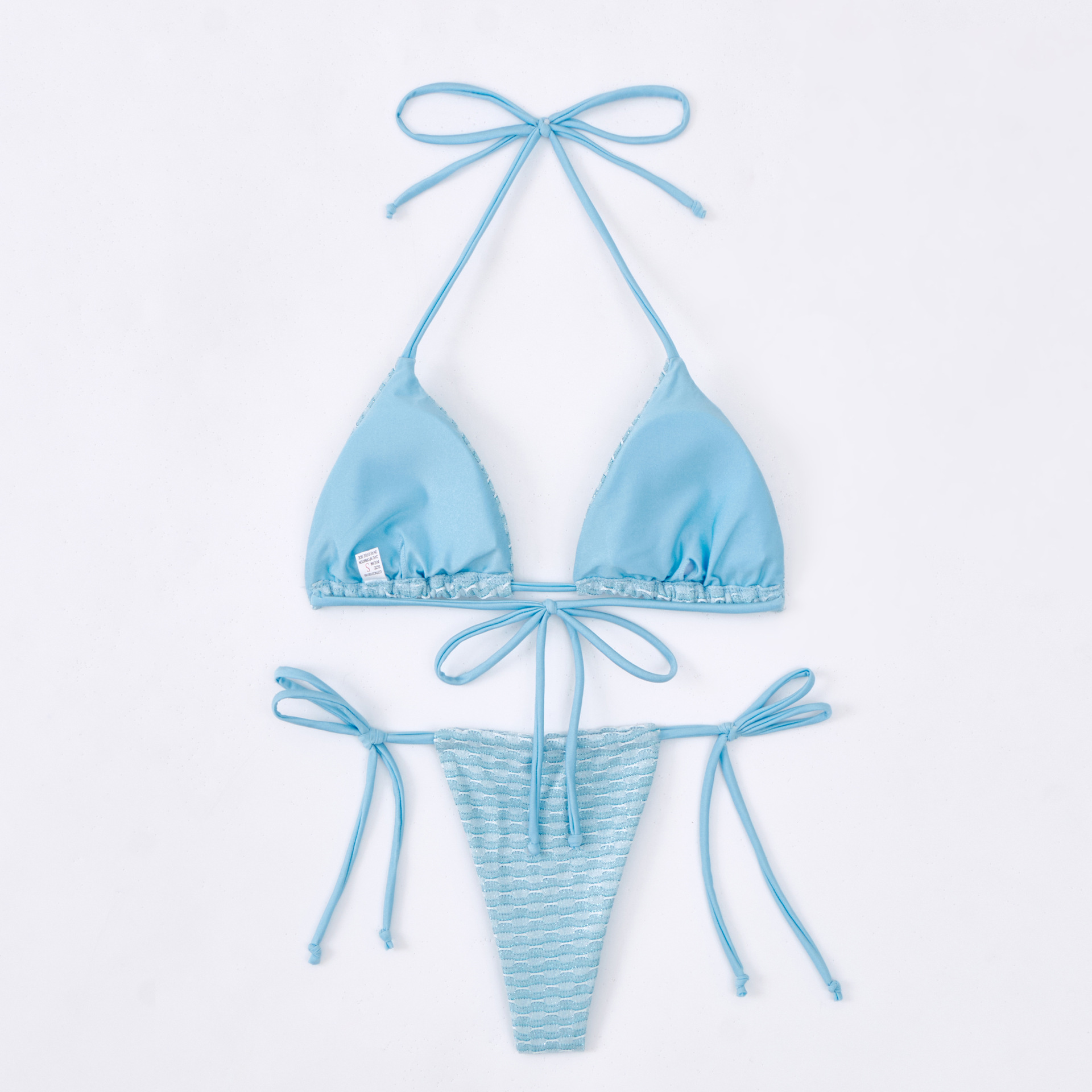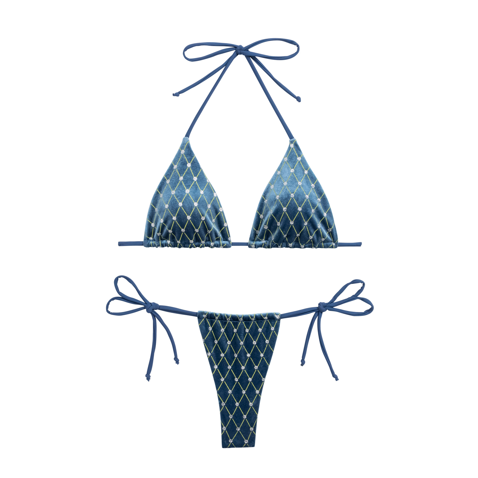 오리지널 골드와 실버 실크 발광 크로스 보더 비키니 아마존 유럽과 미국 스트랩 여성 스플릿 백리스 수영복 재고 수영복스토어 가기