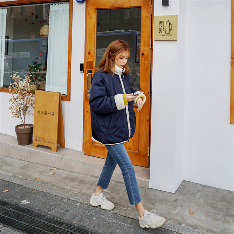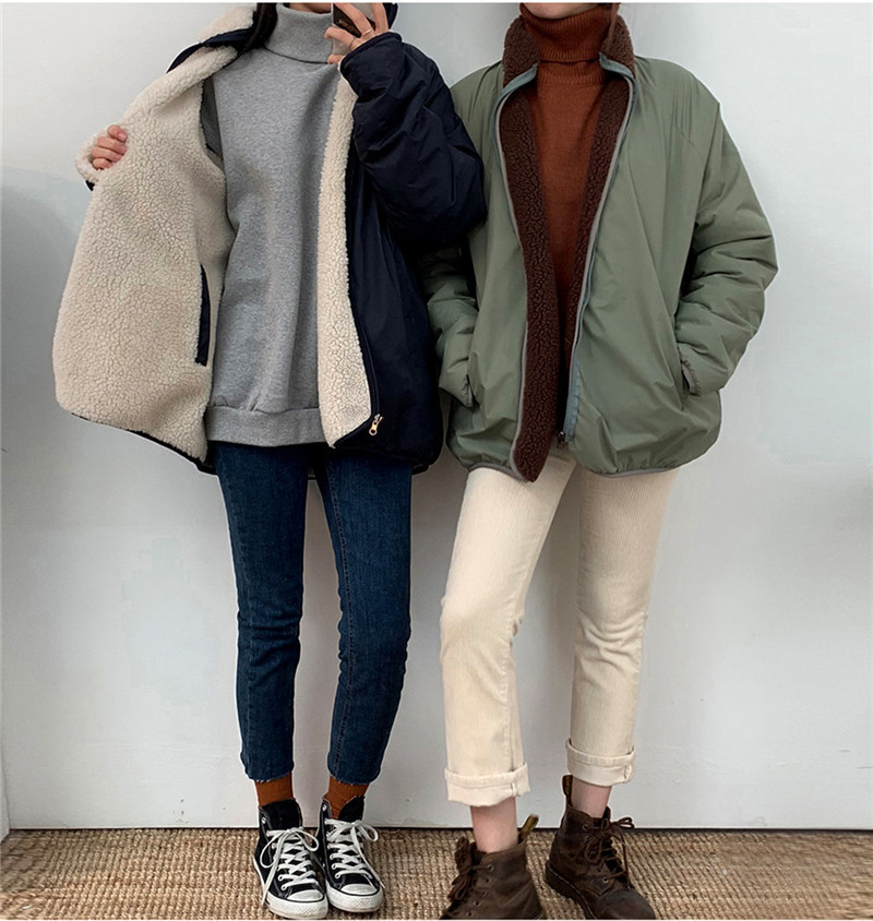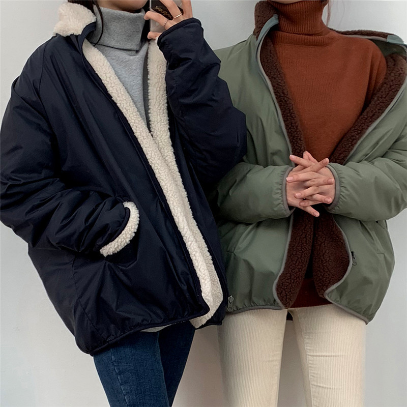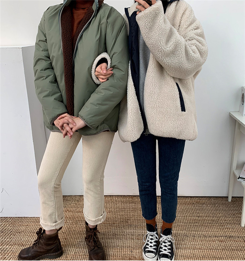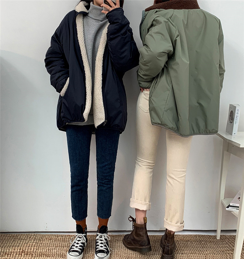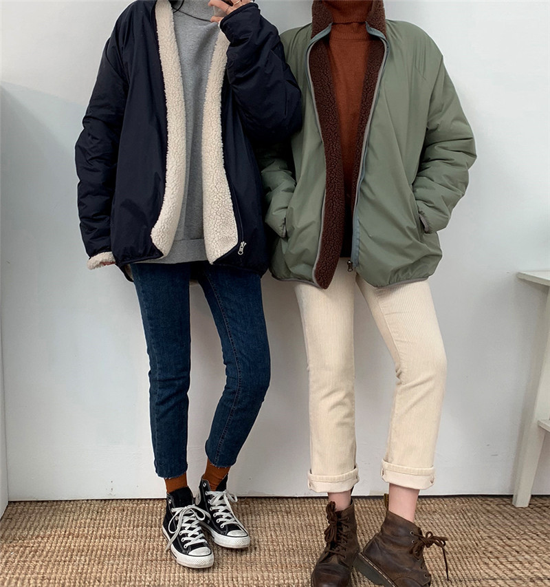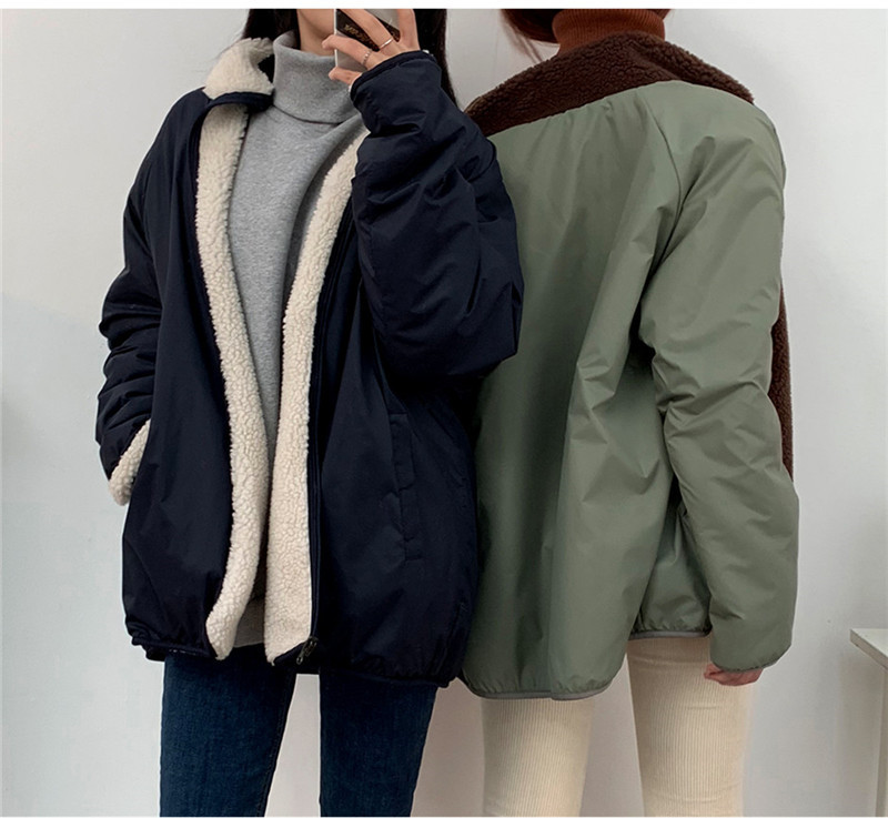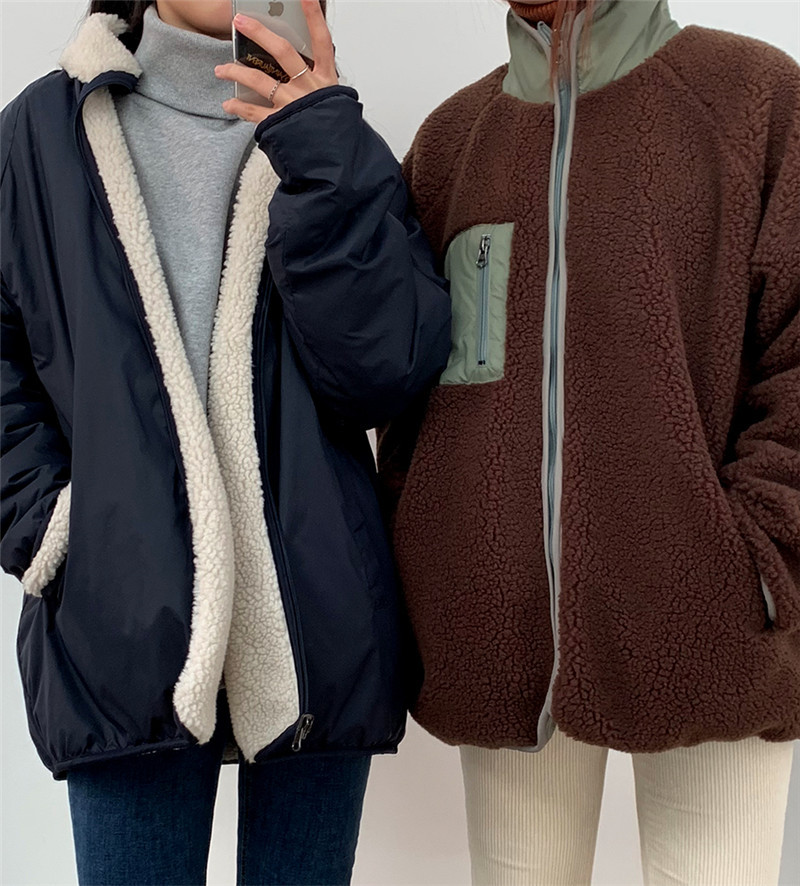 가을과 겨울 일본의 새로운 양면 스탠드 칼라 지퍼 코트 여성 컬러 매칭 따뜻한 재킷 코트 플러스 사이즈스토어 가기