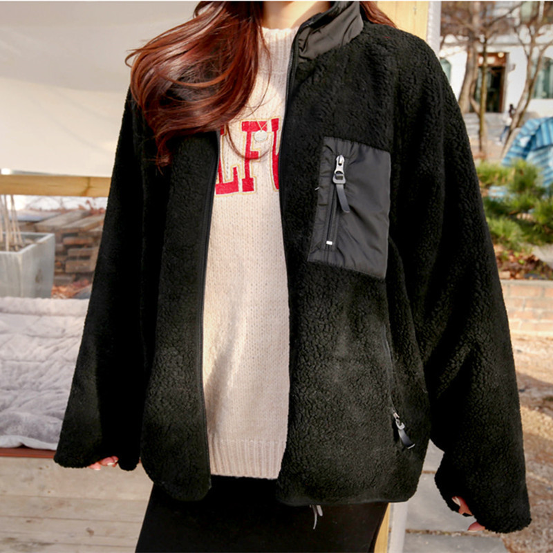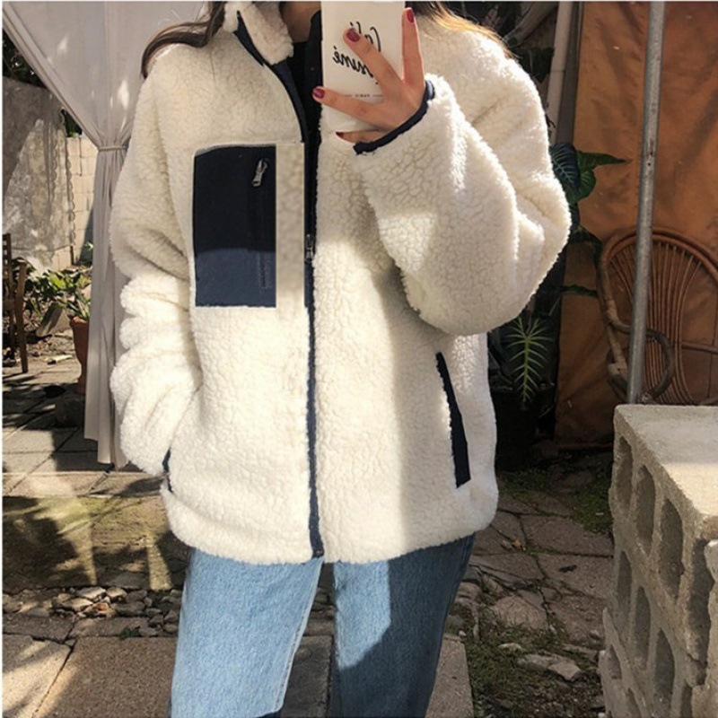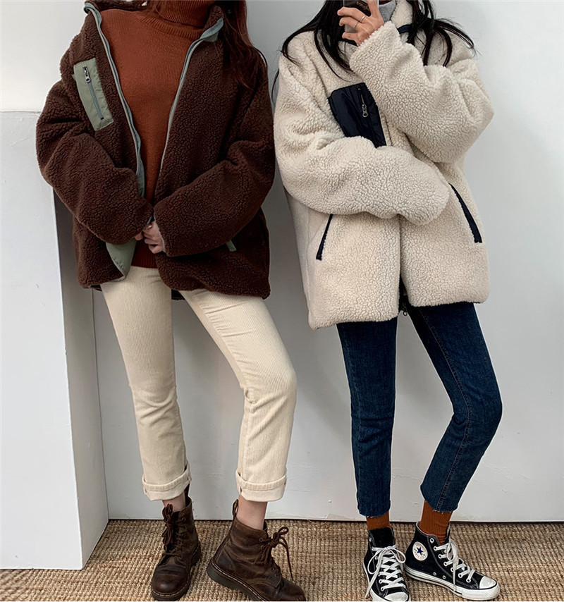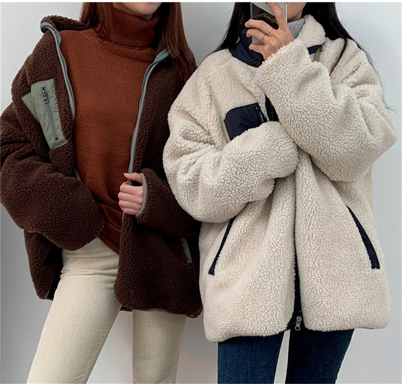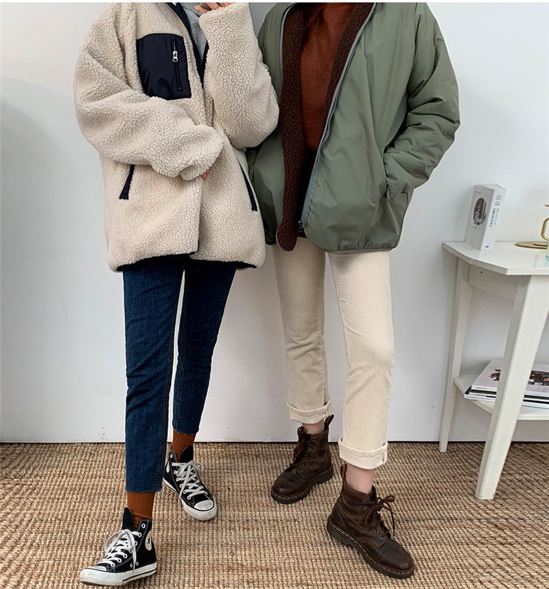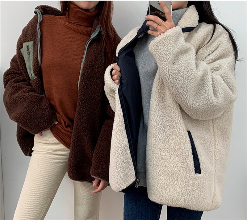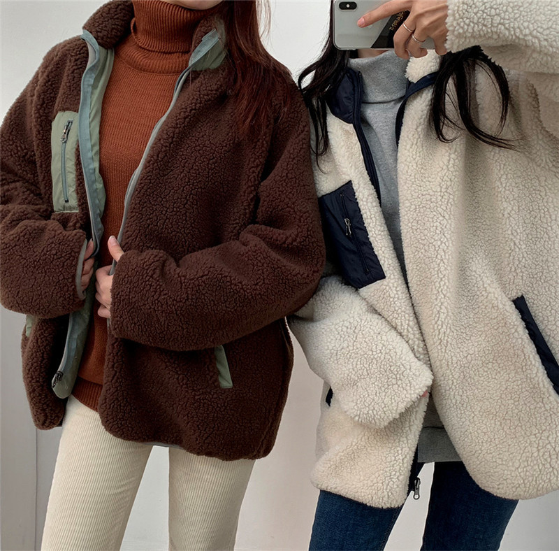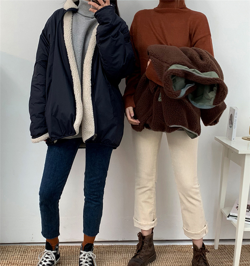 가을과 겨울 일본의 새로운 양면 스탠드 칼라 지퍼 코트 여성 컬러 매칭 따뜻한 재킷 코트 플러스 사이즈스토어 가기