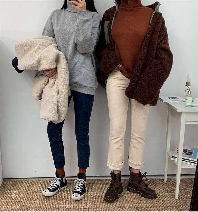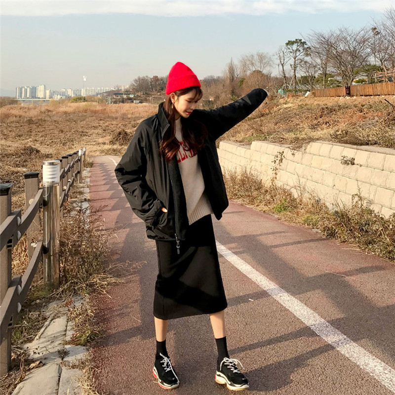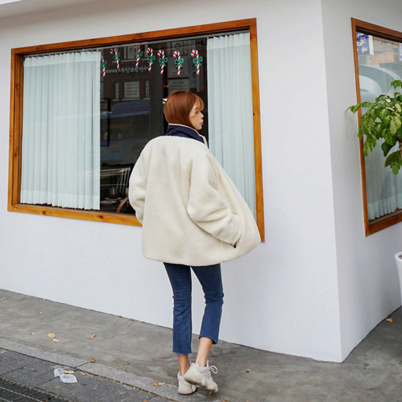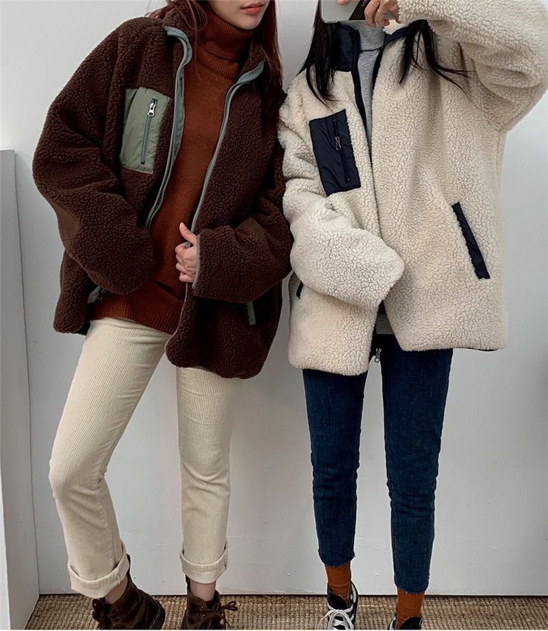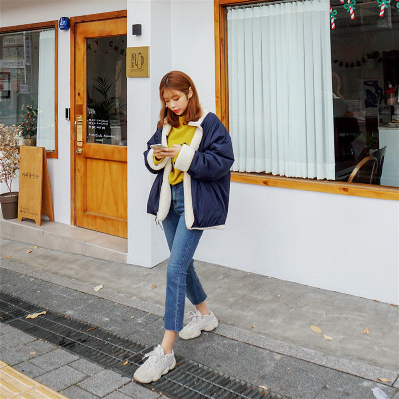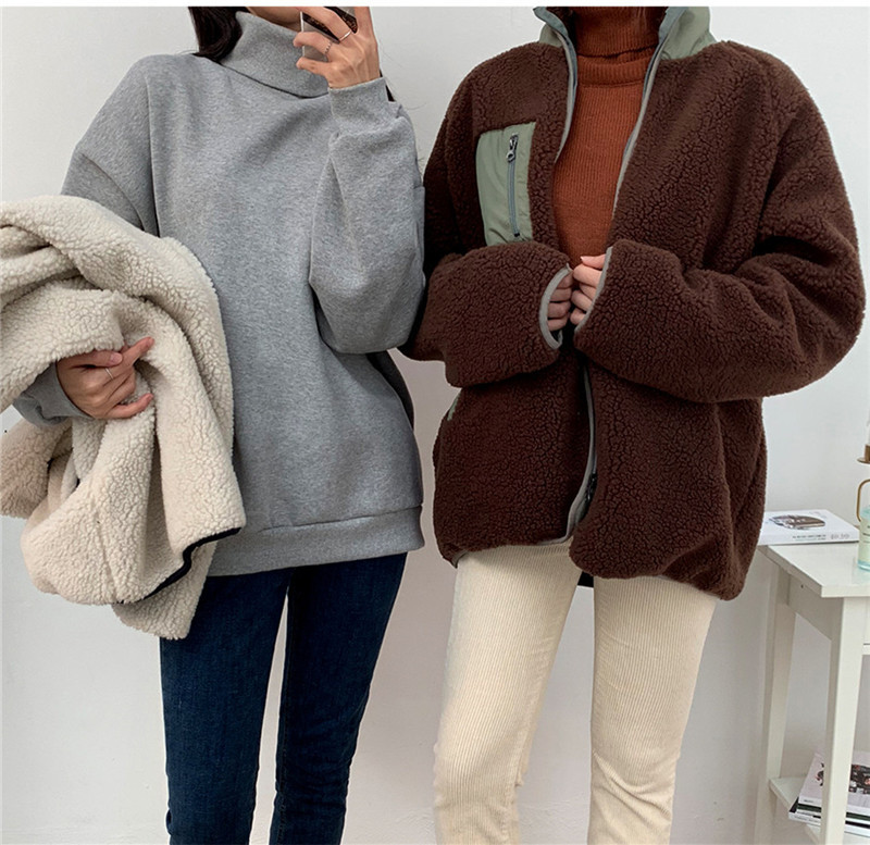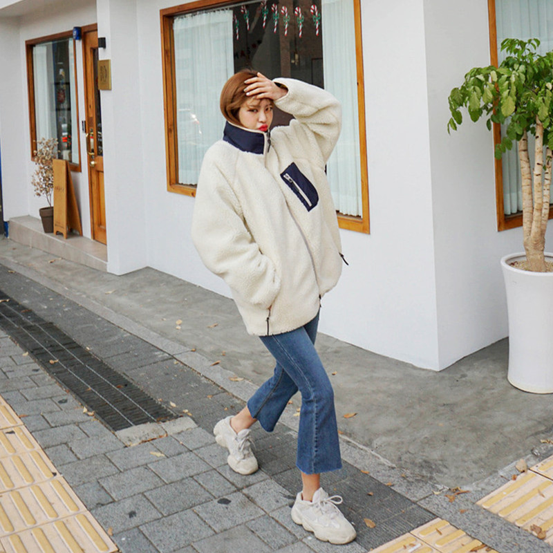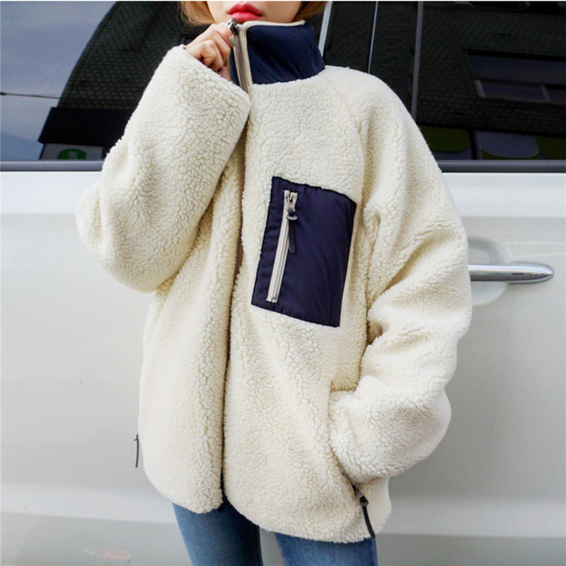 가을과 겨울 일본의 새로운 양면 스탠드 칼라 지퍼 코트 여성 컬러 매칭 따뜻한 재킷 코트 플러스 사이즈스토어 가기