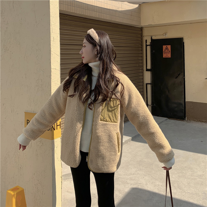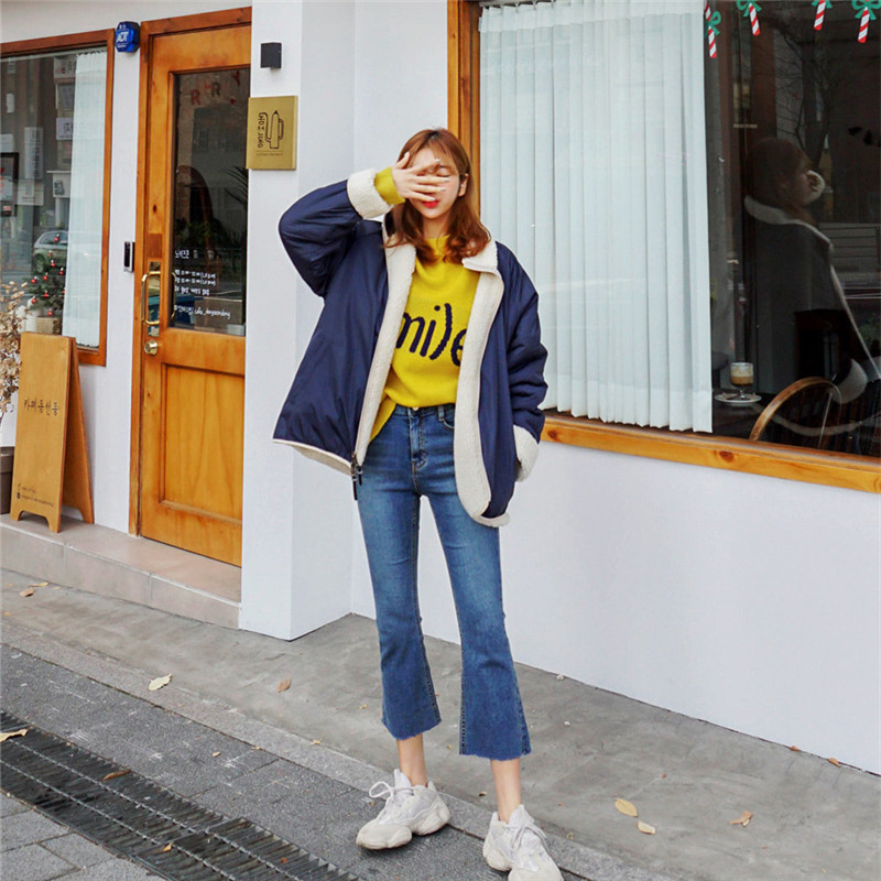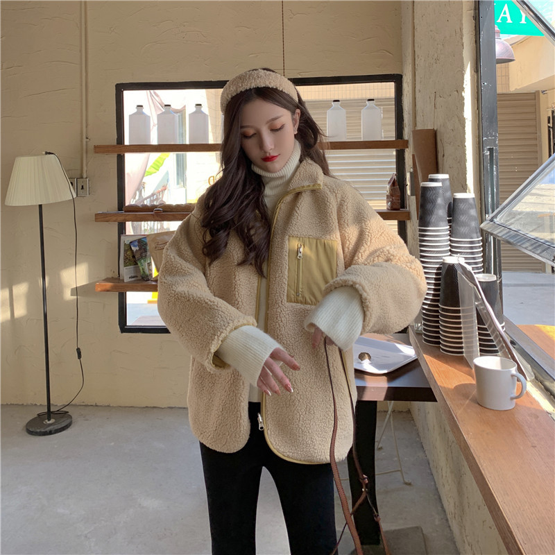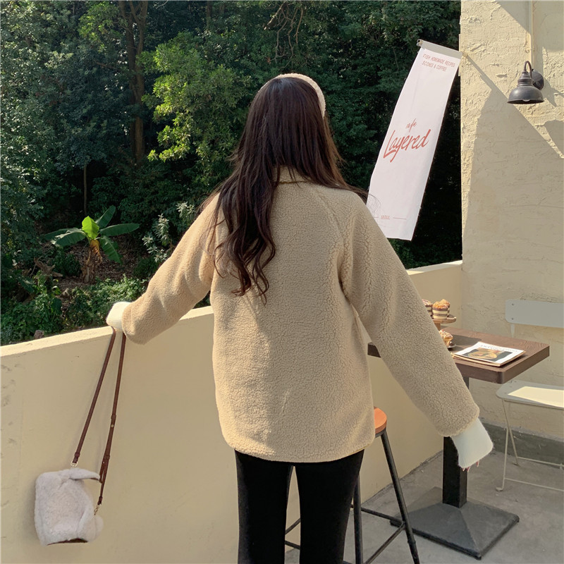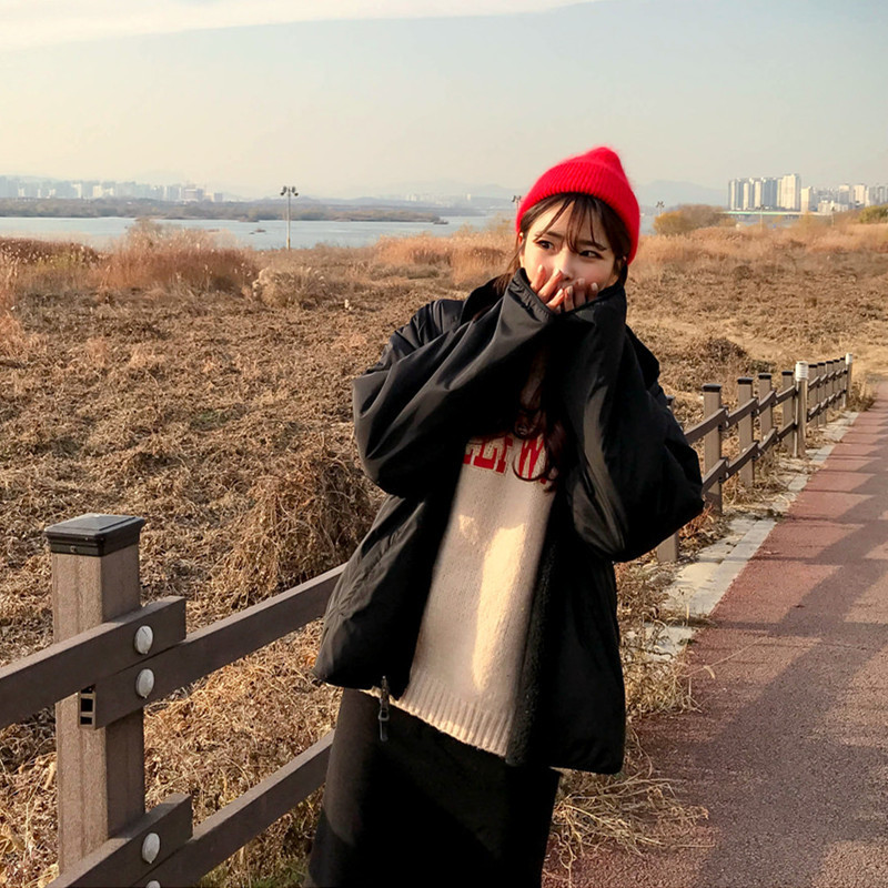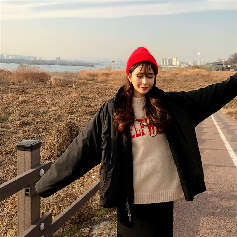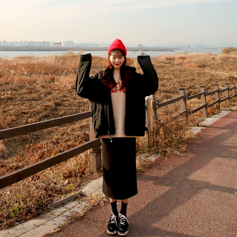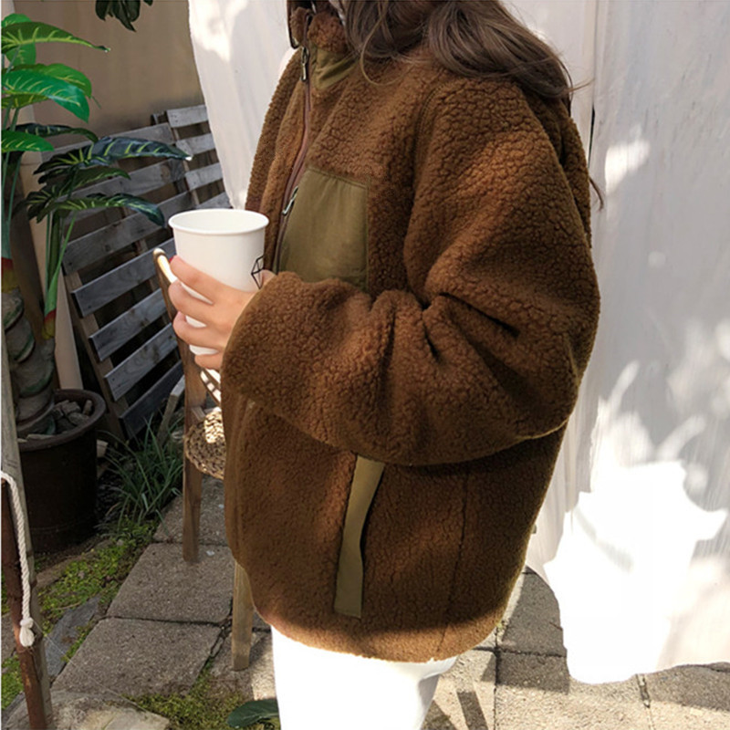 가을과 겨울 일본의 새로운 양면 스탠드 칼라 지퍼 코트 여성 컬러 매칭 따뜻한 재킷 코트 플러스 사이즈스토어 가기