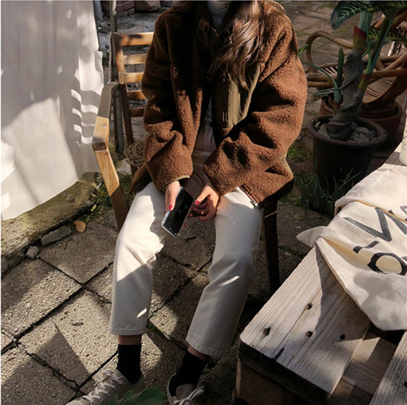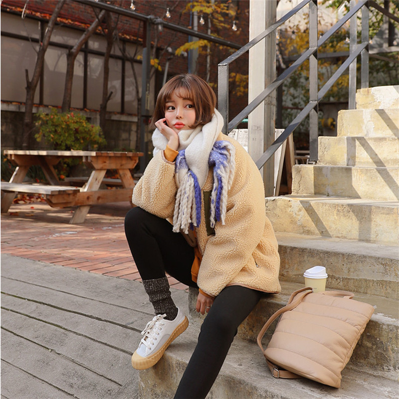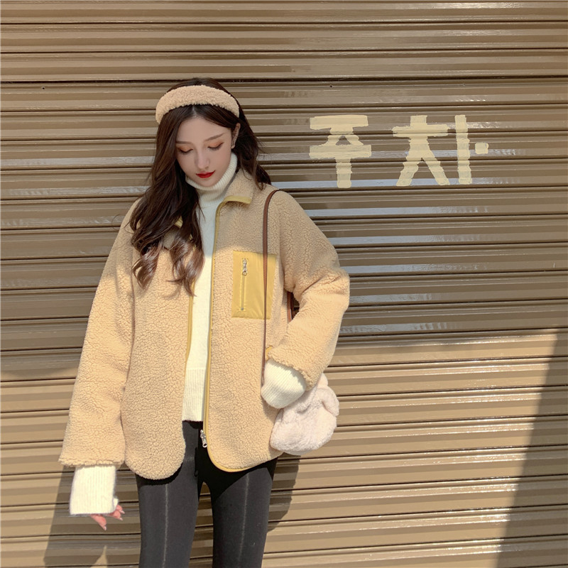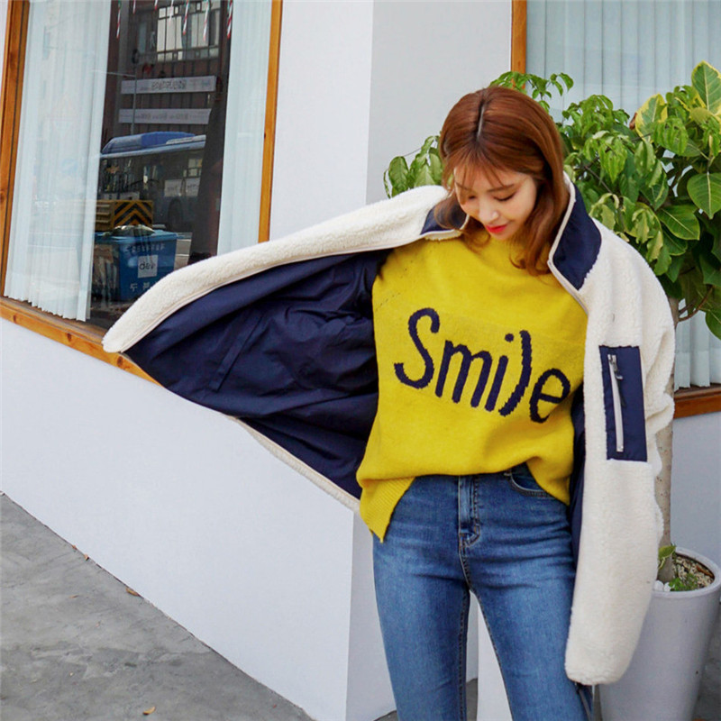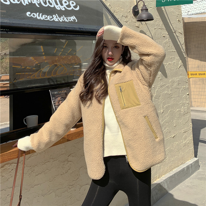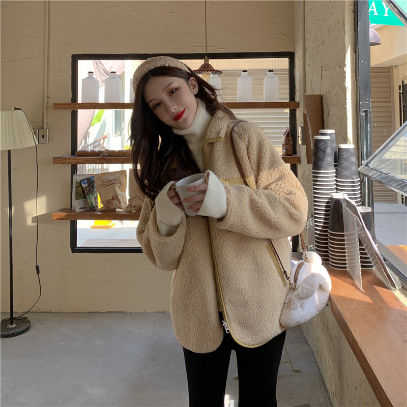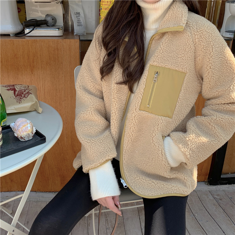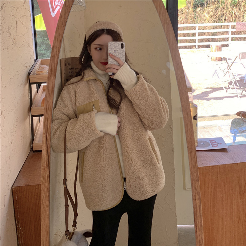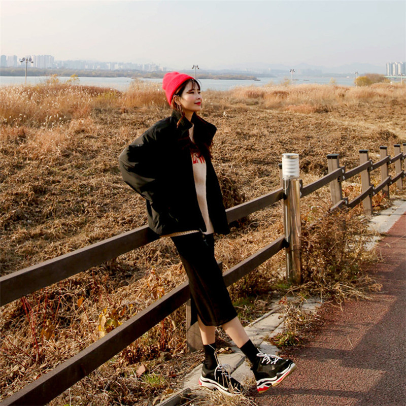 가을과 겨울 일본의 새로운 양면 스탠드 칼라 지퍼 코트 여성 컬러 매칭 따뜻한 재킷 코트 플러스 사이즈스토어 가기