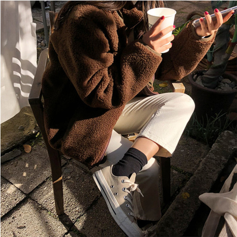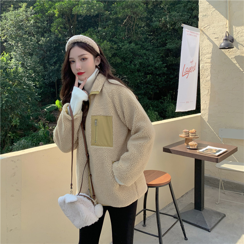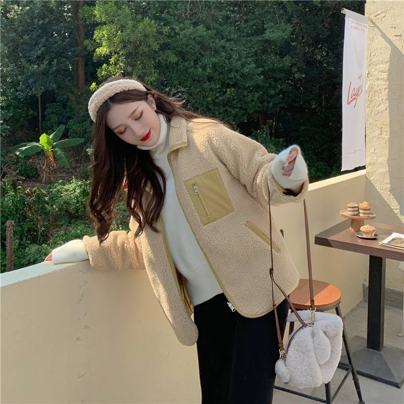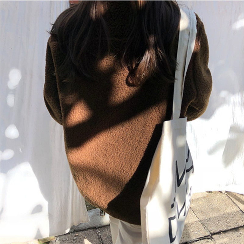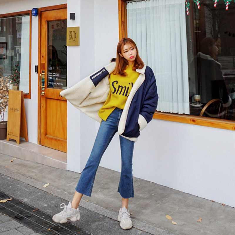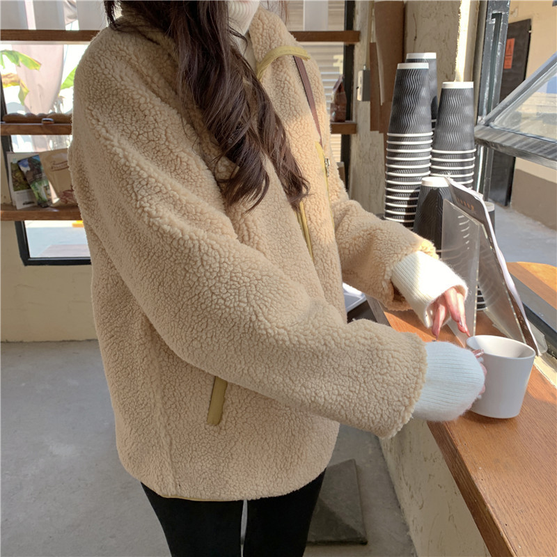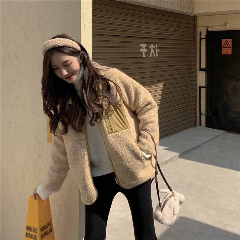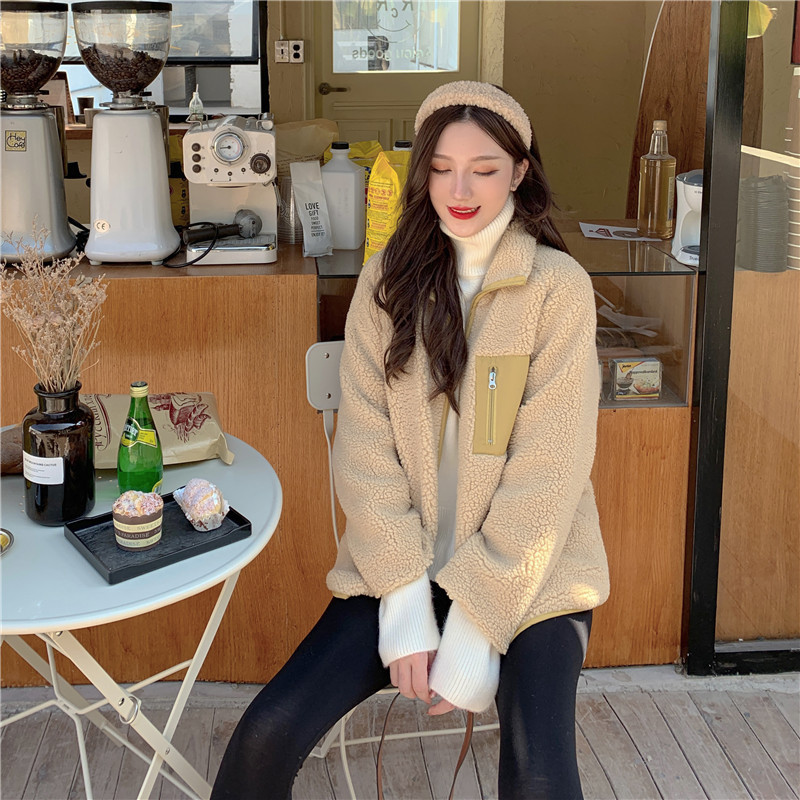 가을과 겨울 일본의 새로운 양면 스탠드 칼라 지퍼 코트 여성 컬러 매칭 따뜻한 재킷 코트 플러스 사이즈스토어 가기