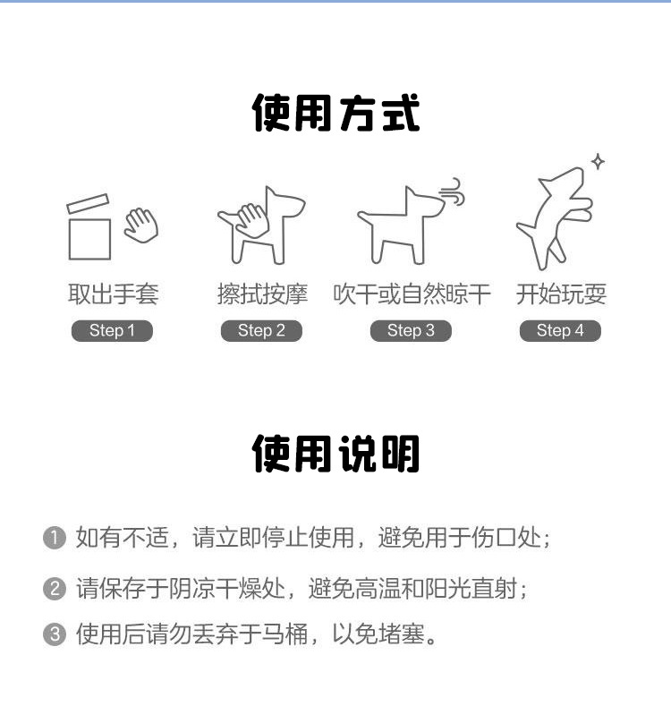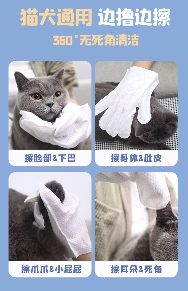 애완 동물 사장 목욕없는 장갑 핥는 단일 조각 고양이와 개 청소 물티슈 장갑 일회용 탈취제스토어 가기