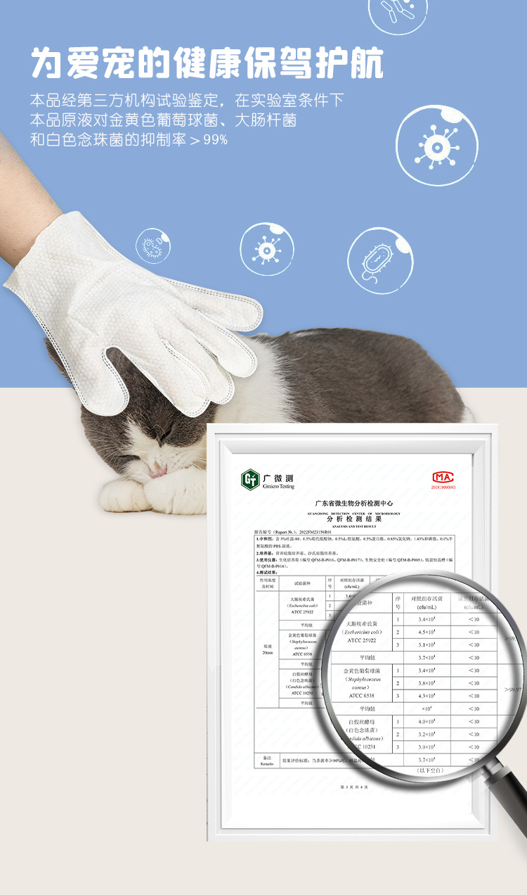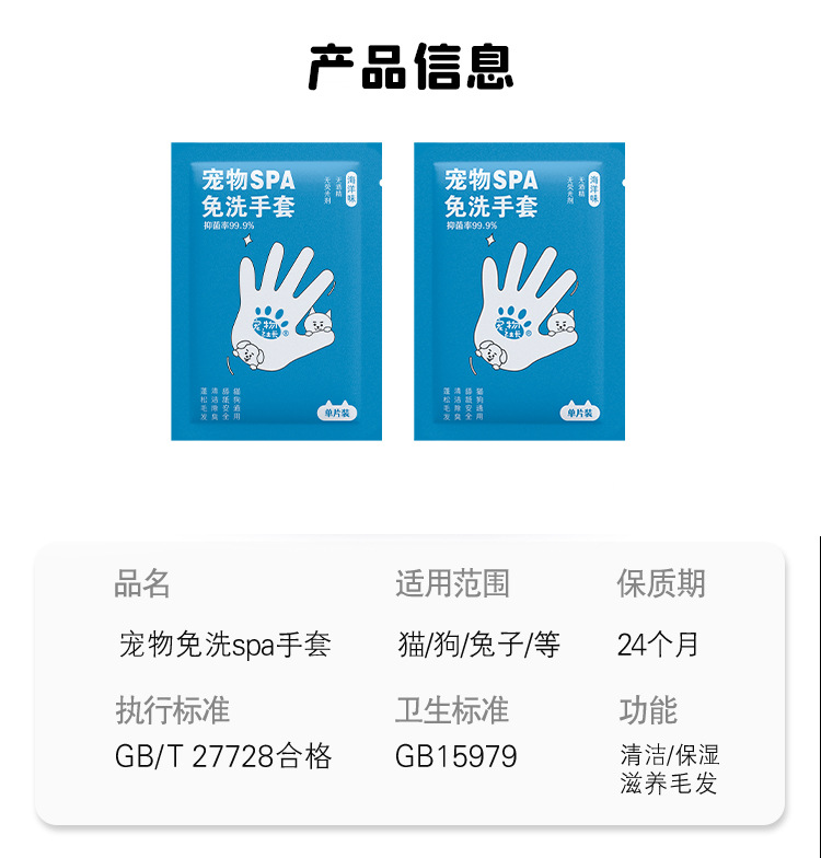 애완 동물 사장 목욕없는 장갑 핥는 단일 조각 고양이와 개 청소 물티슈 장갑 일회용 탈취제