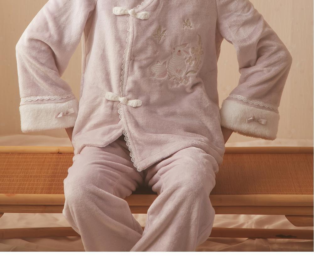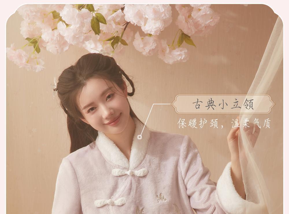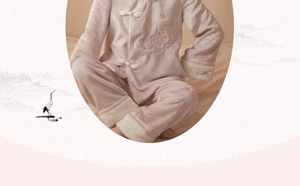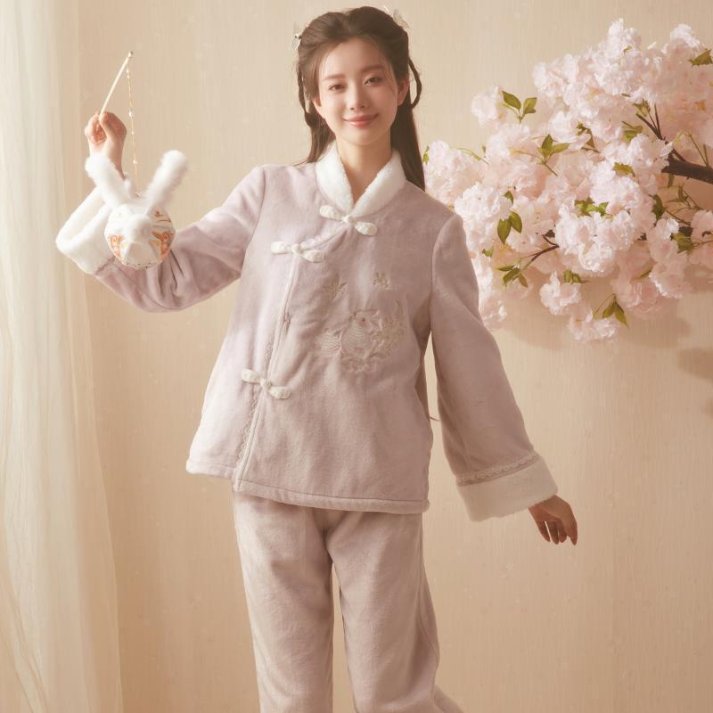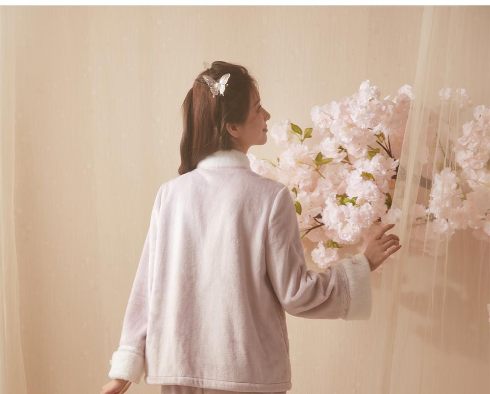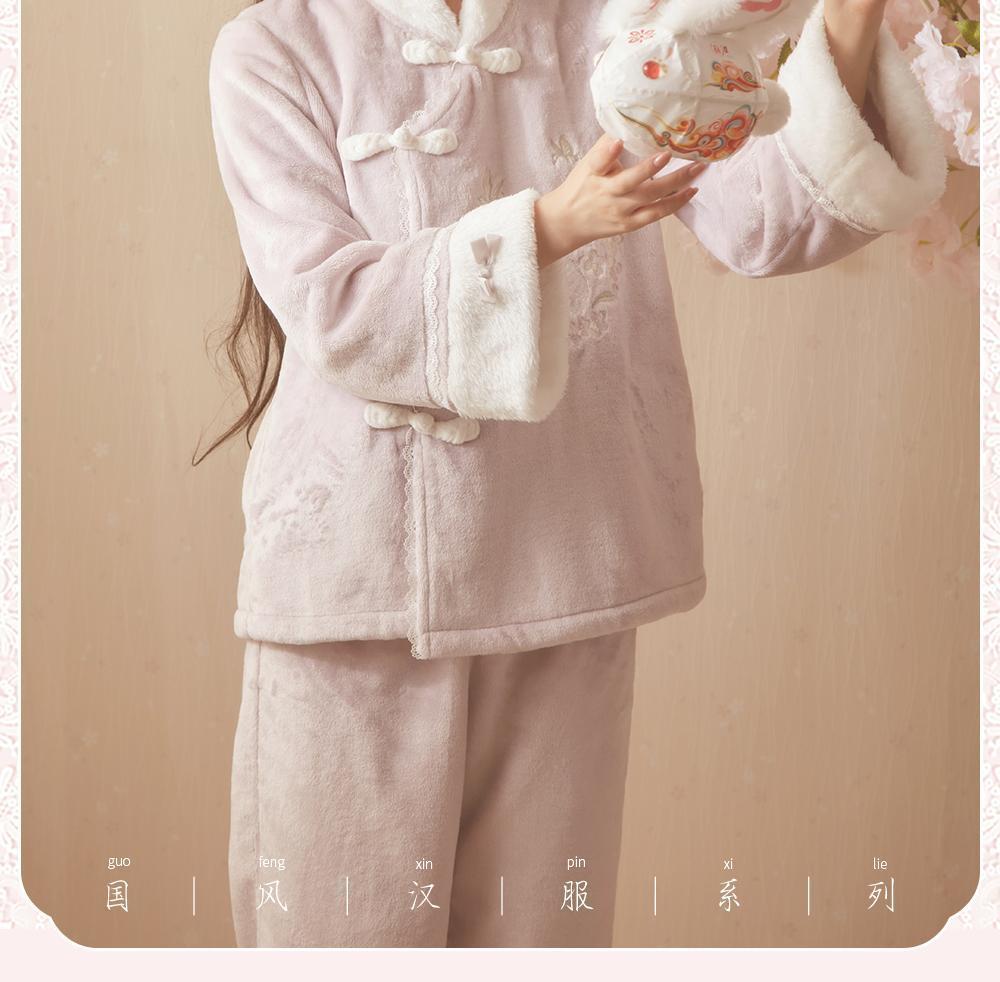 산호 바다 섬 벨벳 파자마 여성의 가을과 겨울 세트 국가 스타일 한후 기모 두꺼운 홈 웨어는 외부에서 착용 할 수 있습니다.