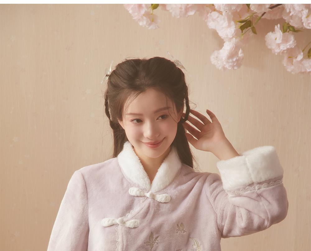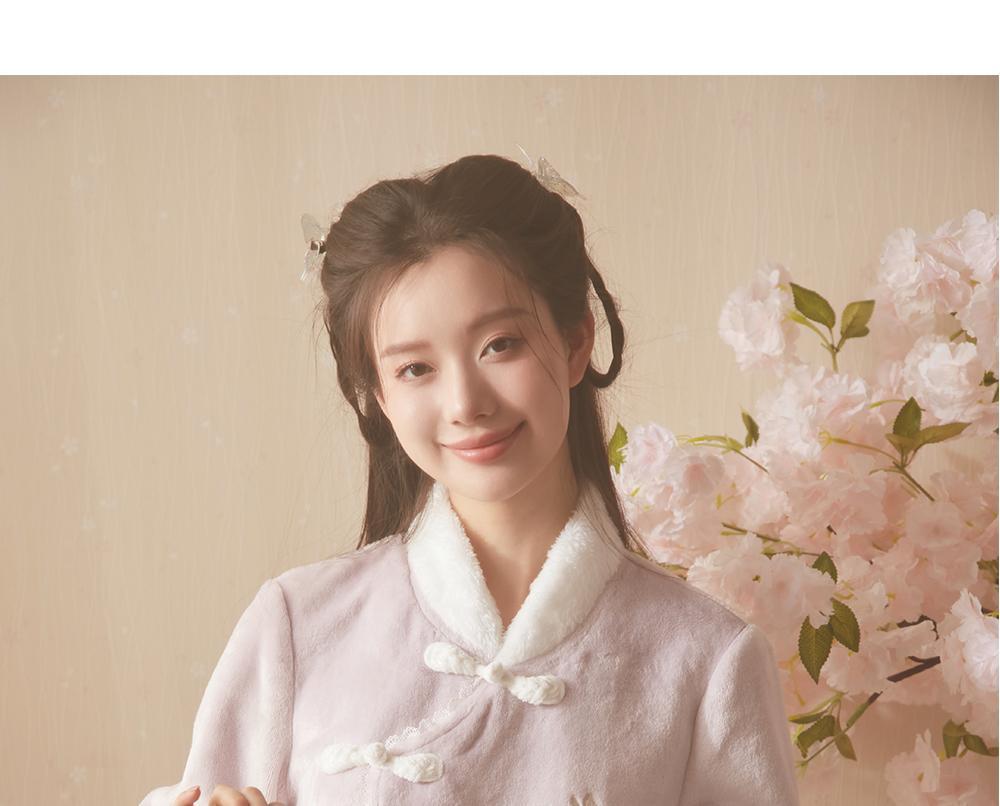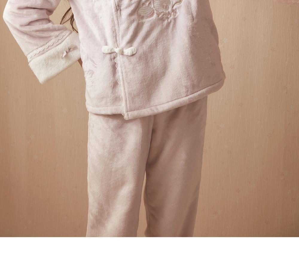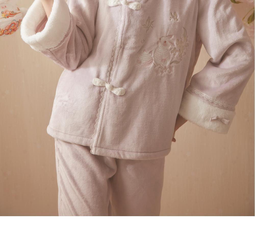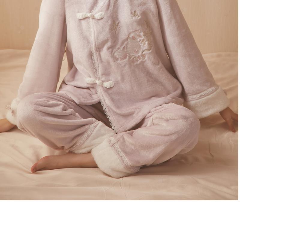 산호 바다 섬 벨벳 파자마 여성의 가을과 겨울 세트 국가 스타일 한후 기모 두꺼운 홈 웨어는 외부에서 착용 할 수 있습니다.