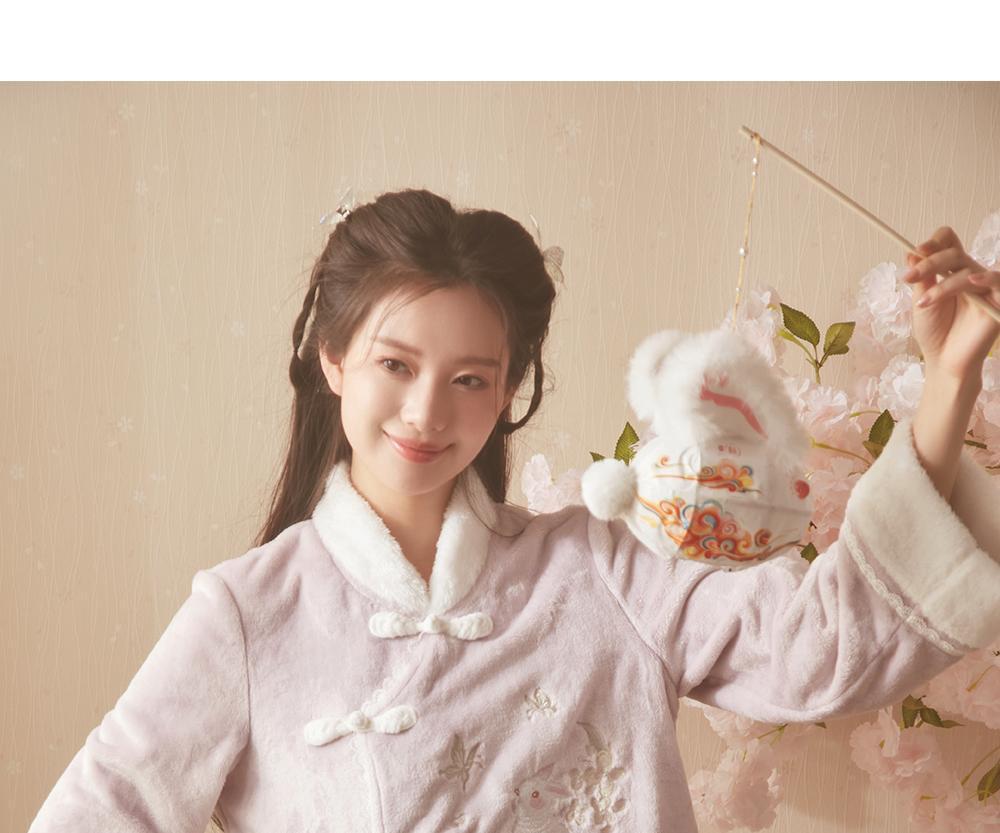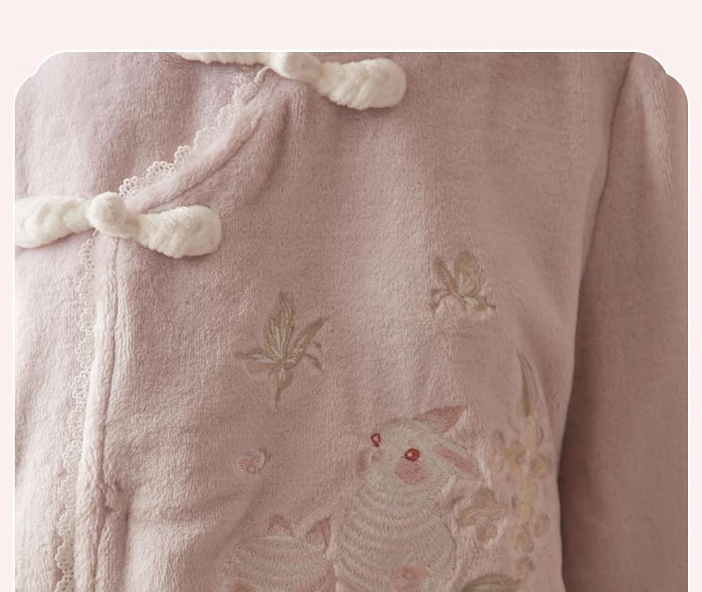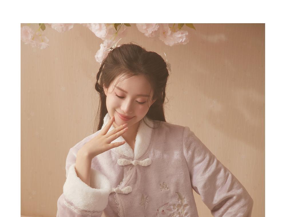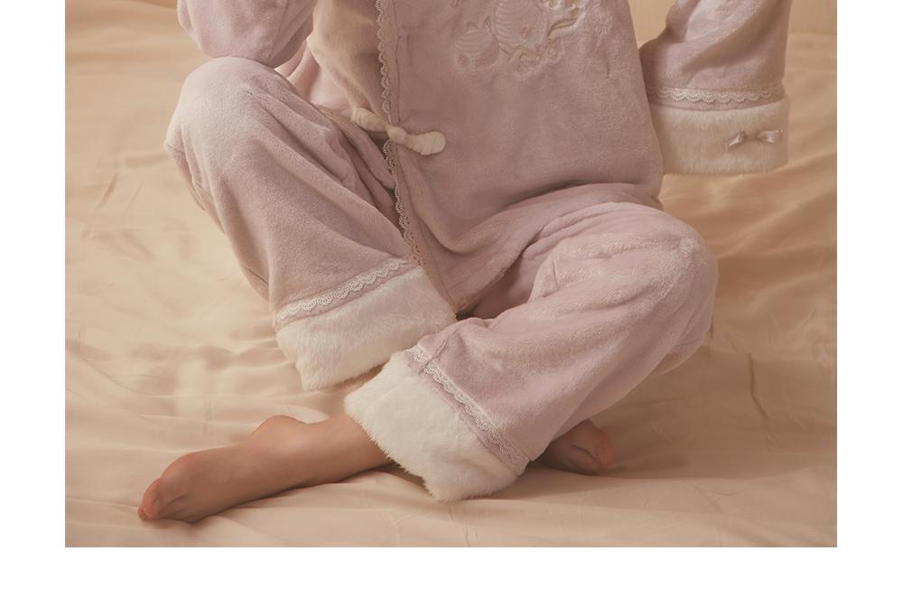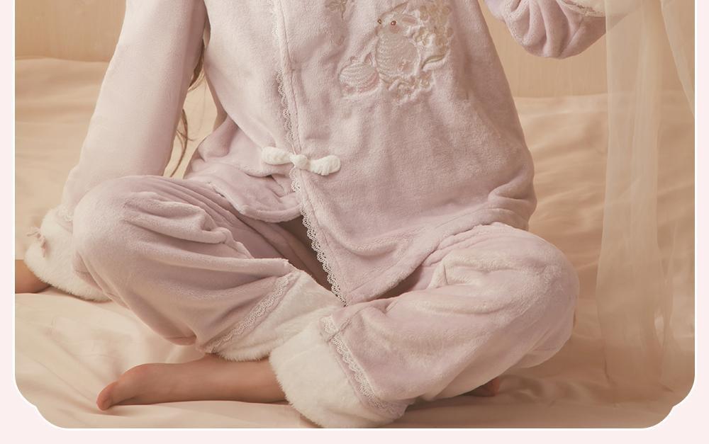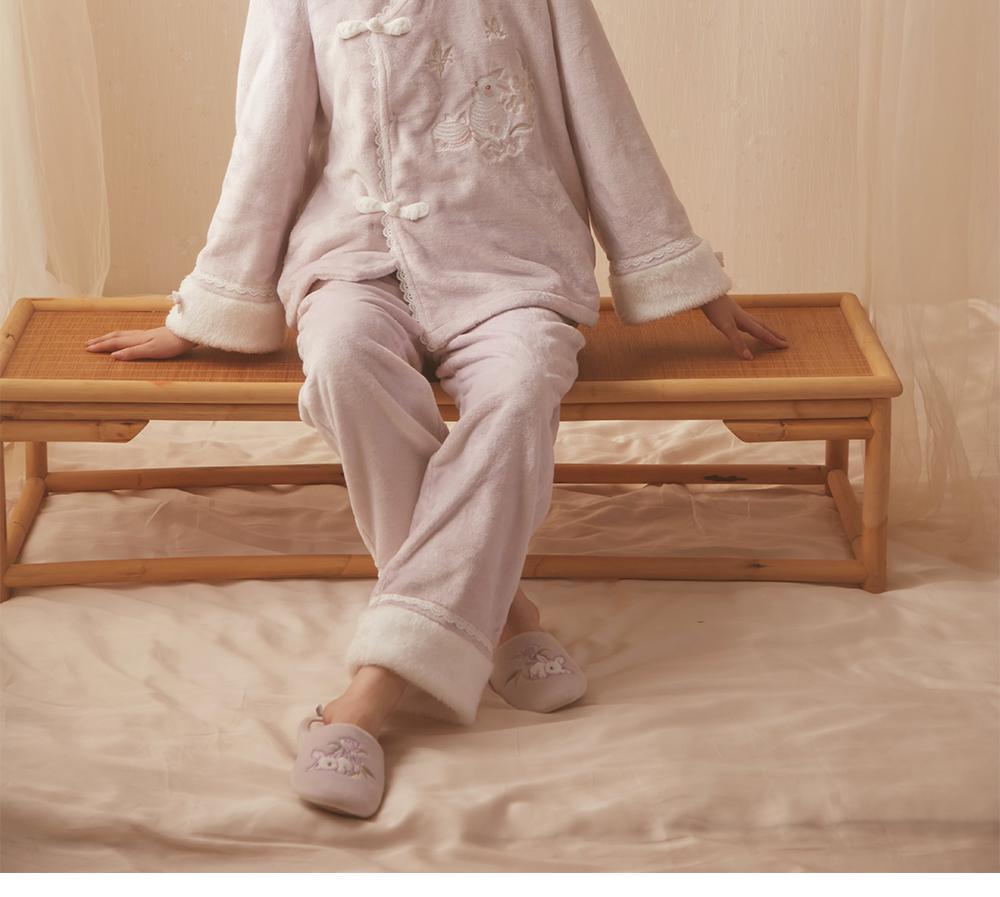 산호 바다 섬 벨벳 파자마 여성의 가을과 겨울 세트 국가 스타일 한후 기모 두꺼운 홈 웨어는 외부에서 착용 할 수 있습니다.