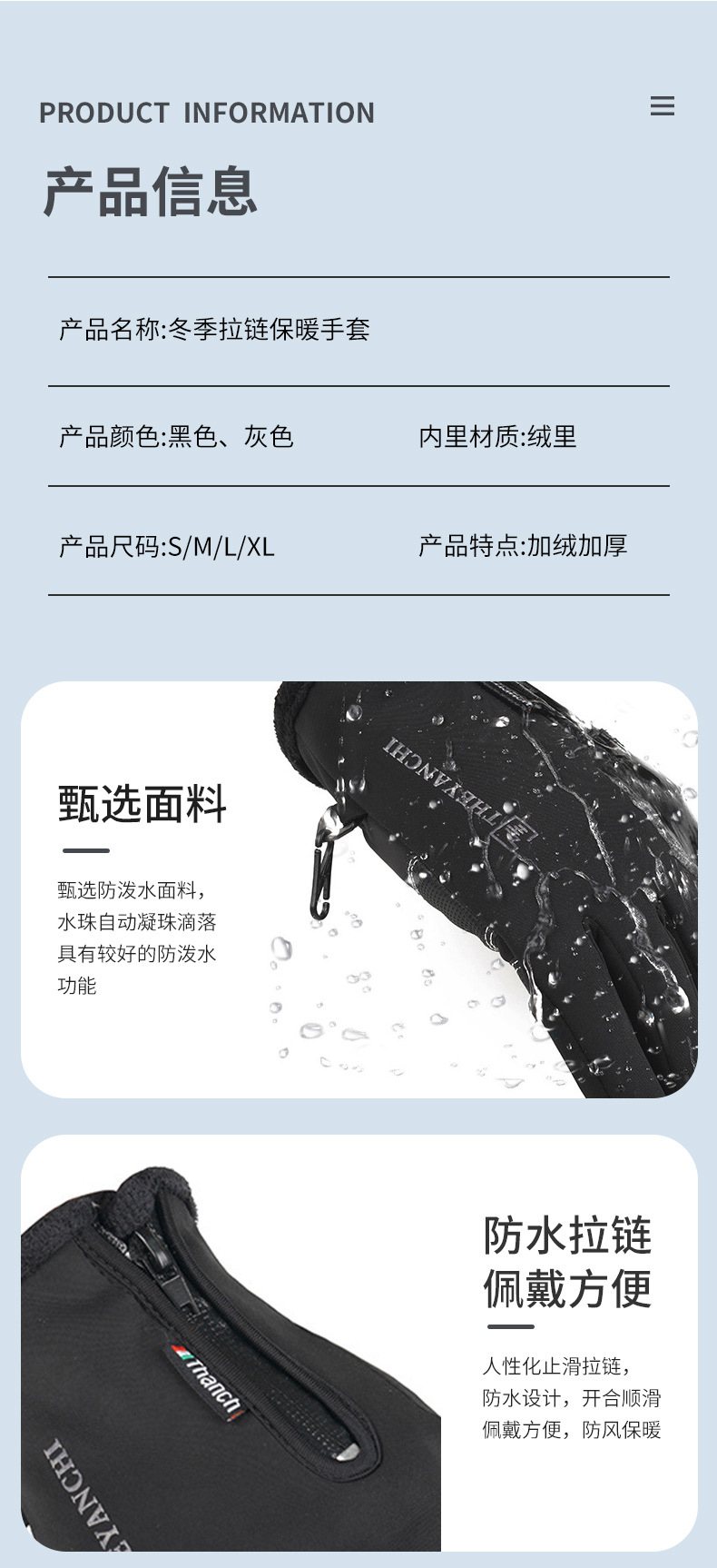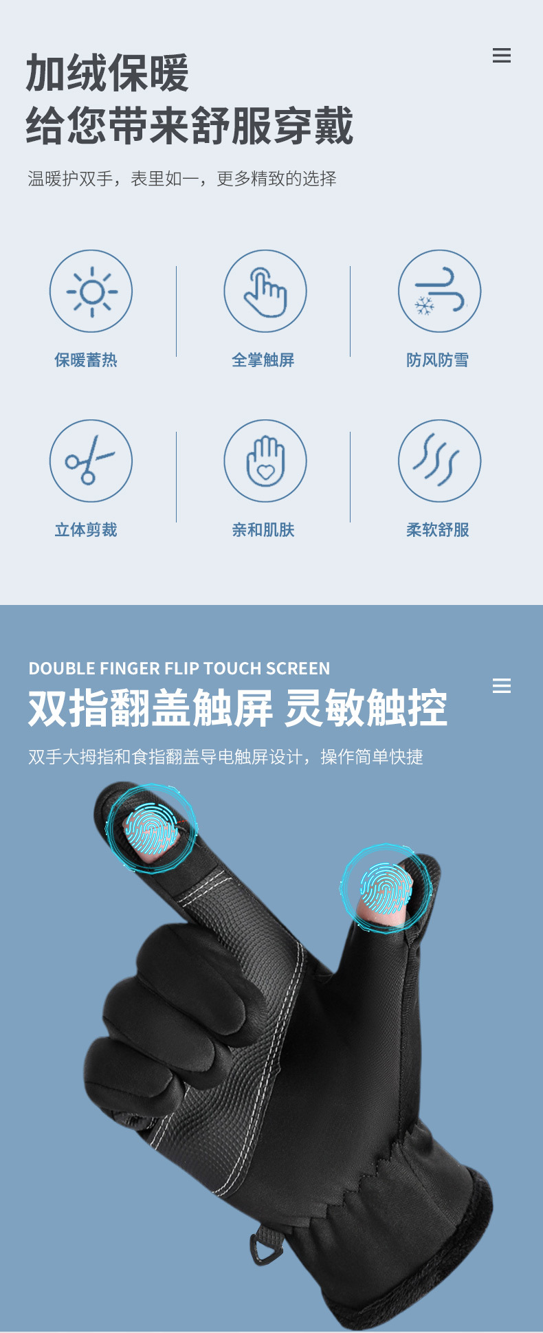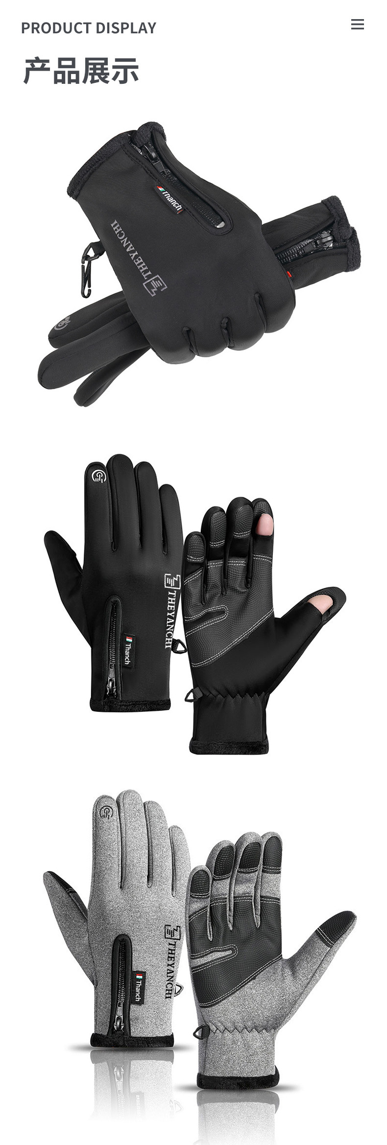 겨울 기모 따뜻한 장갑 방수 지퍼 장갑 야외 사이클링 스포츠 미끄럼 방지 장갑 플립 터치 스크린 장갑