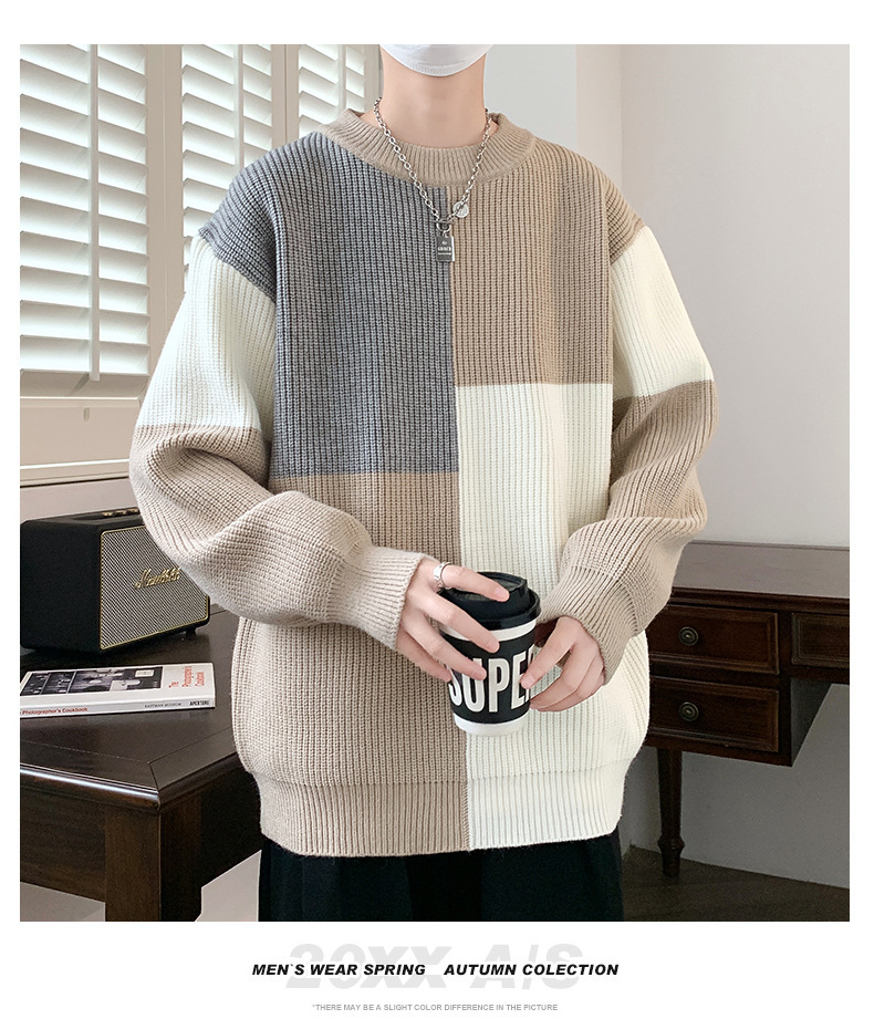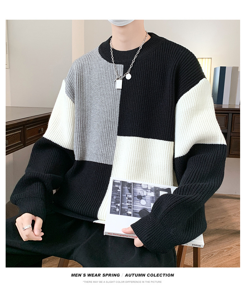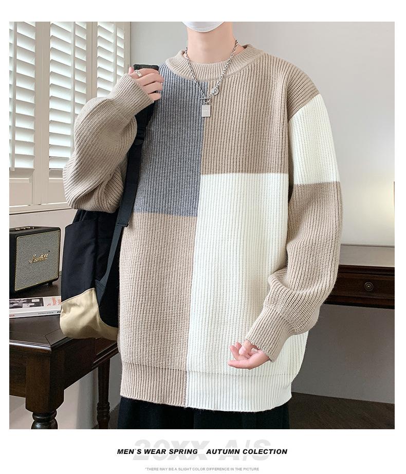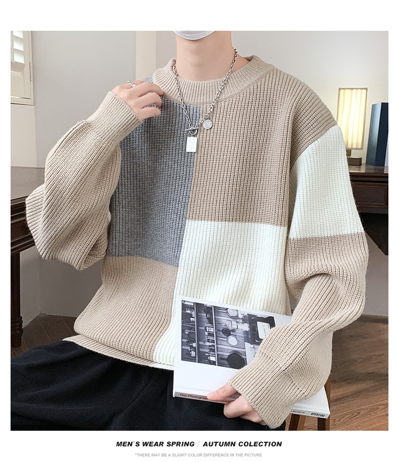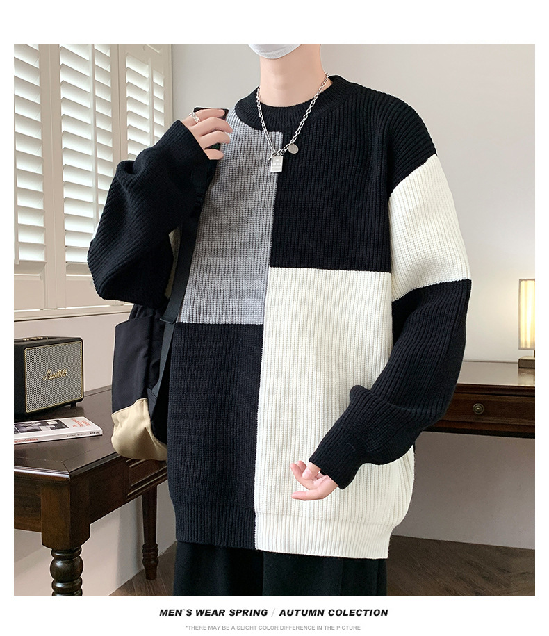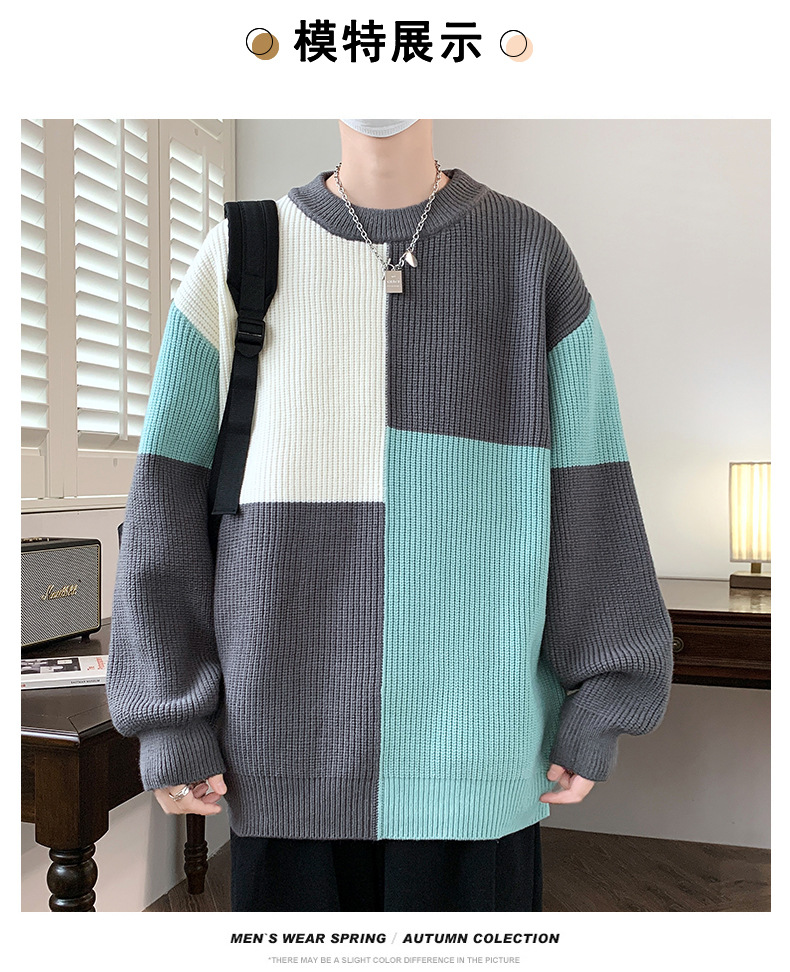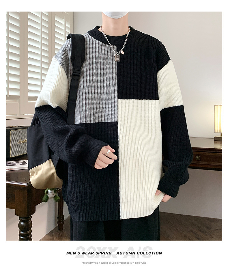 Anyang 스웨터 남성 가을, 겨울 2024 새로운 느슨한 두꺼운 모직 옷 대비 색상 캐주얼 스웨터 도매스토어 가기