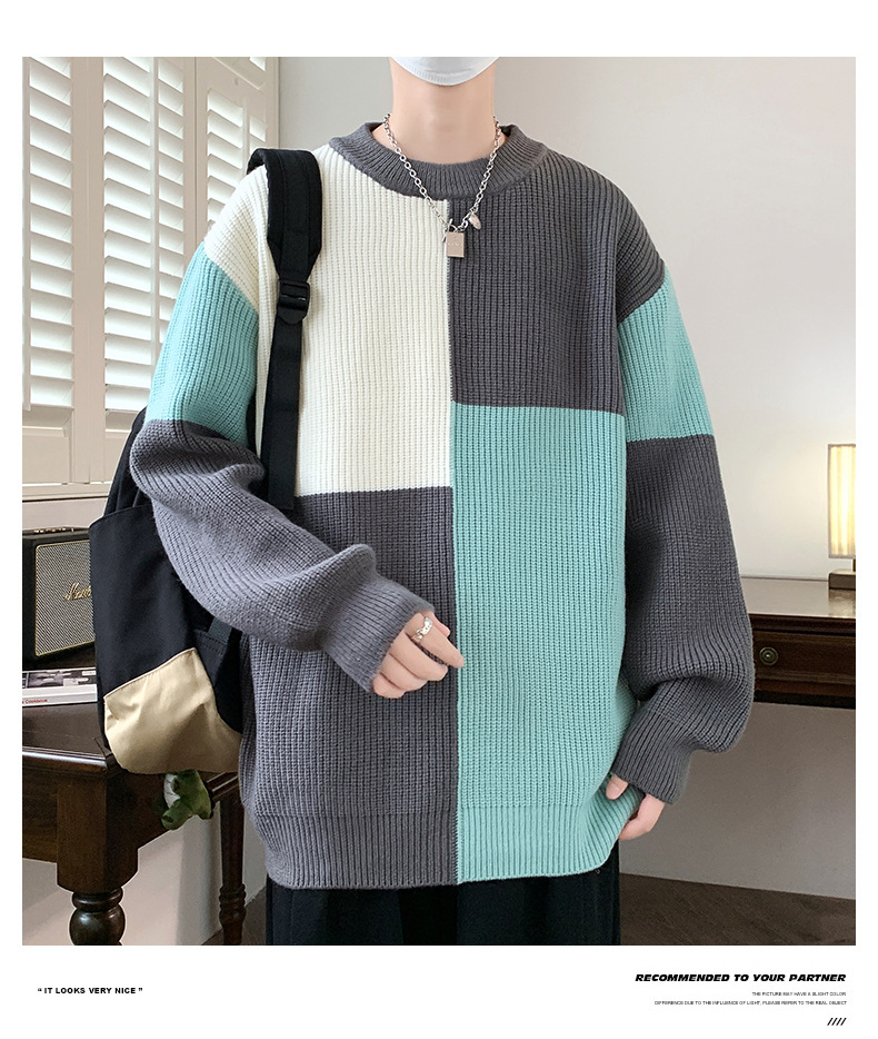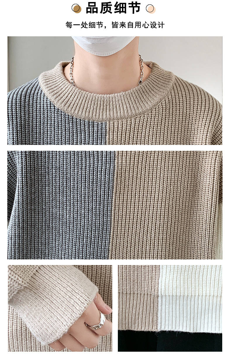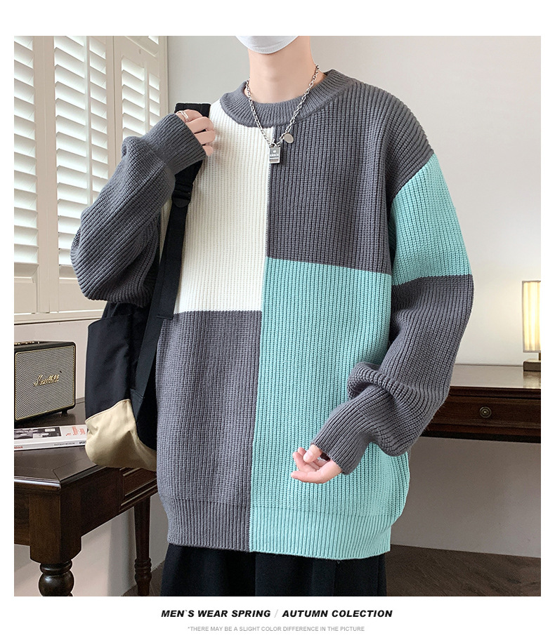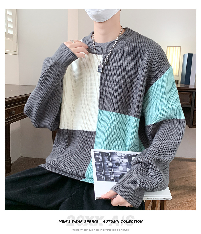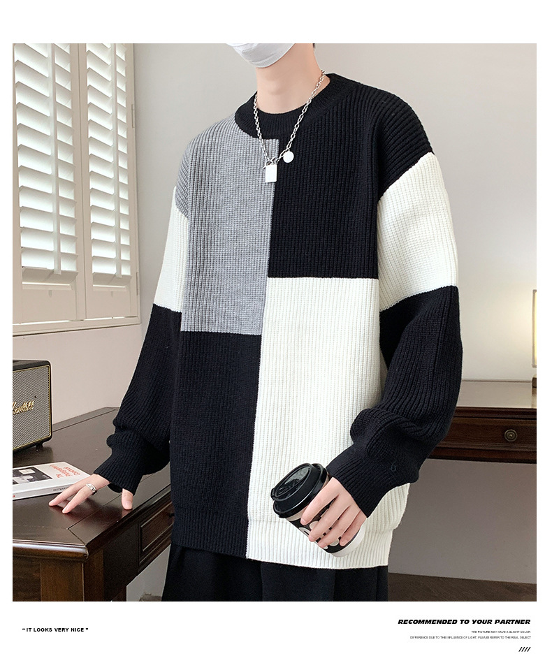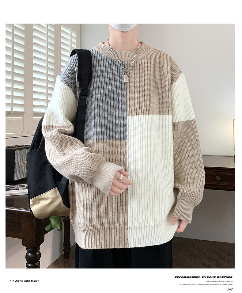 Anyang 스웨터 남성 가을, 겨울 2024 새로운 느슨한 두꺼운 모직 옷 대비 색상 캐주얼 스웨터 도매스토어 가기