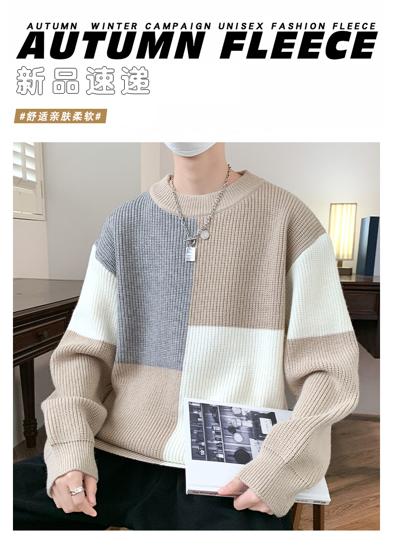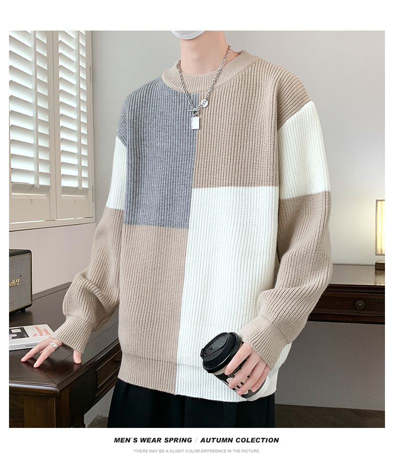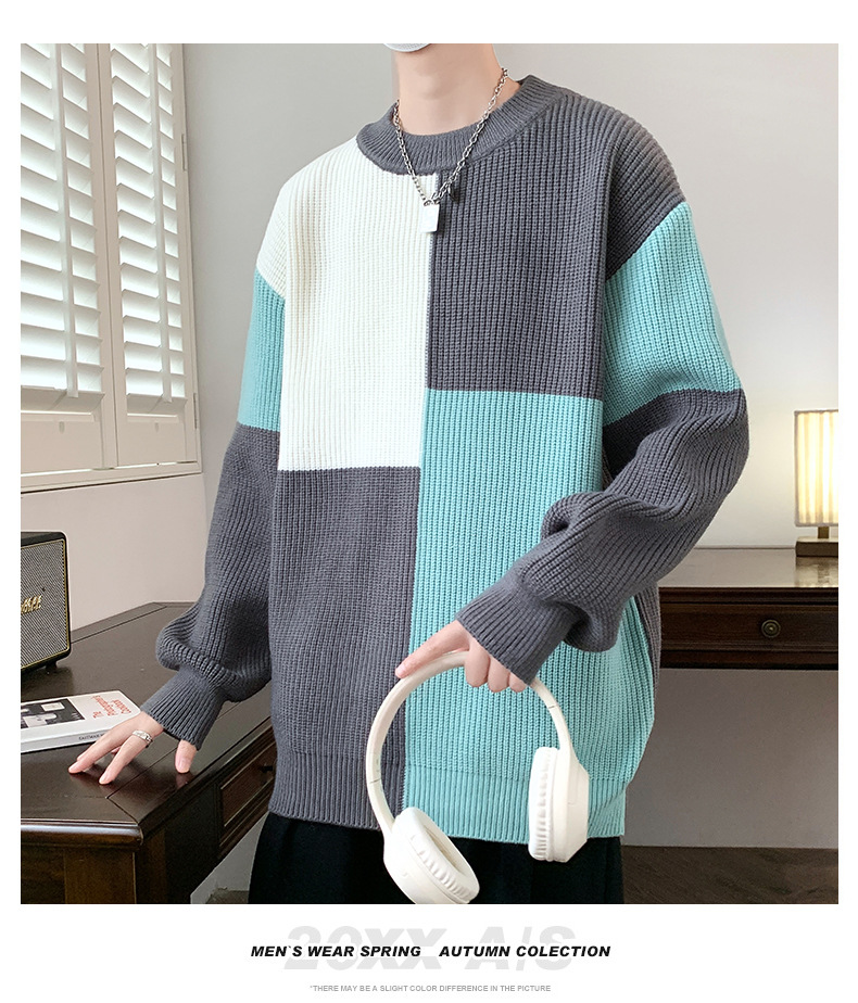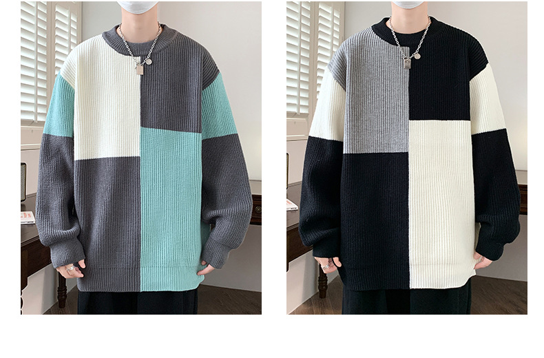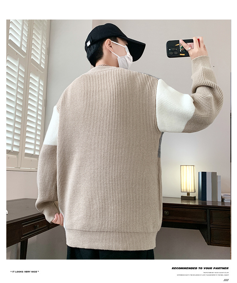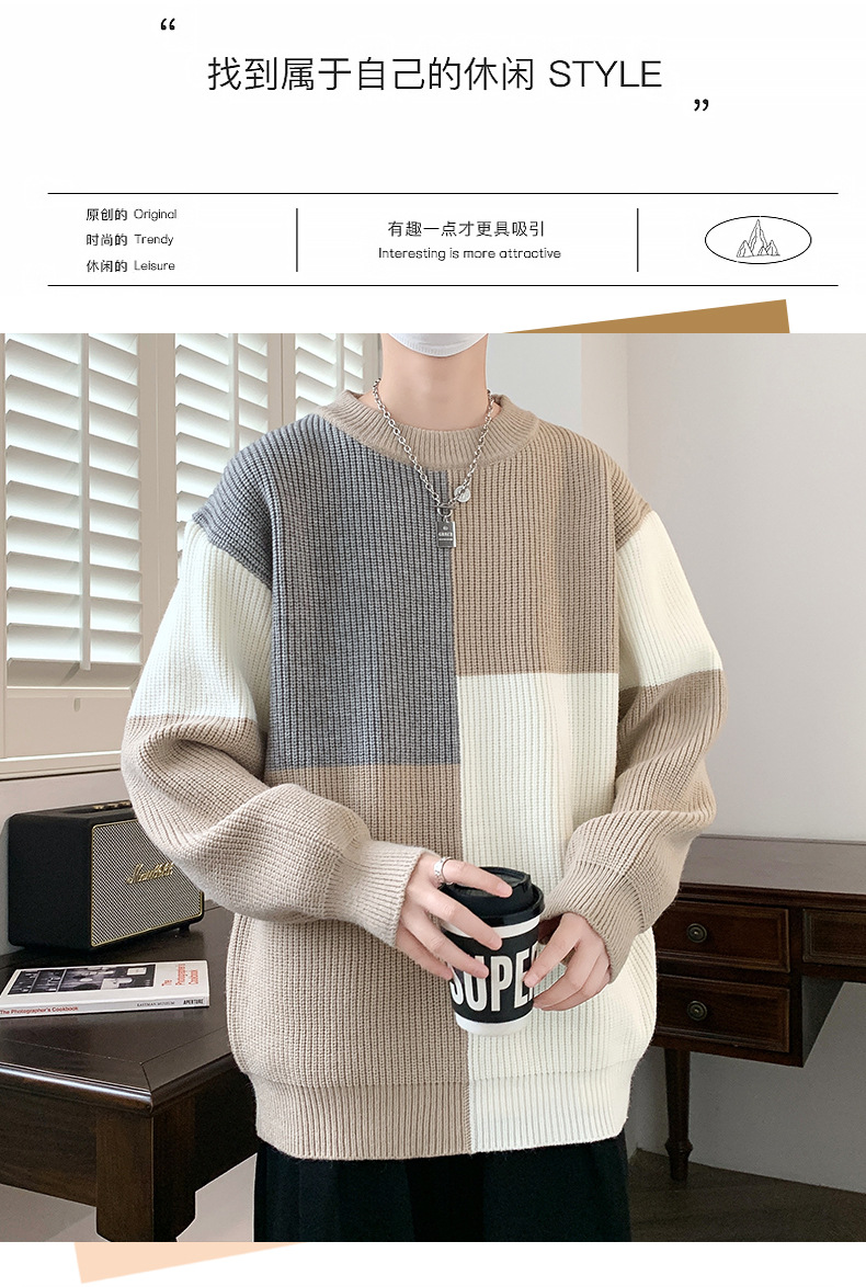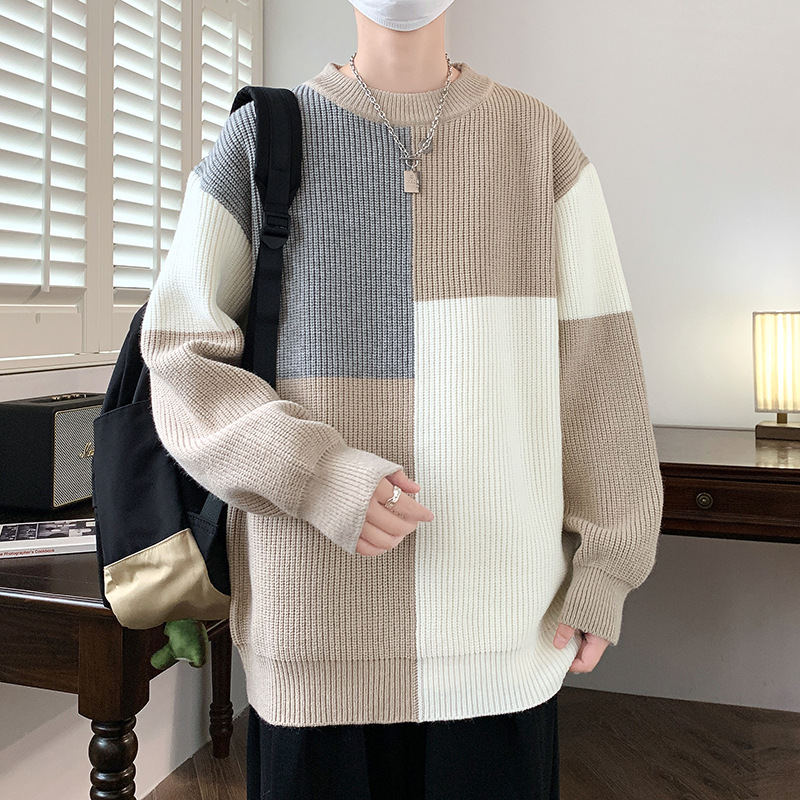 Anyang 스웨터 남성 가을, 겨울 2024 새로운 느슨한 두꺼운 모직 옷 대비 색상 캐주얼 스웨터 도매스토어 가기