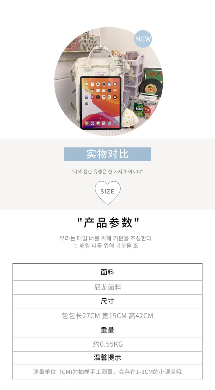 휴대용 책가방 여성 초등학생 3 ~ 6 학년 대용량 중학생 고등학교 대학생 배낭스토어 가기