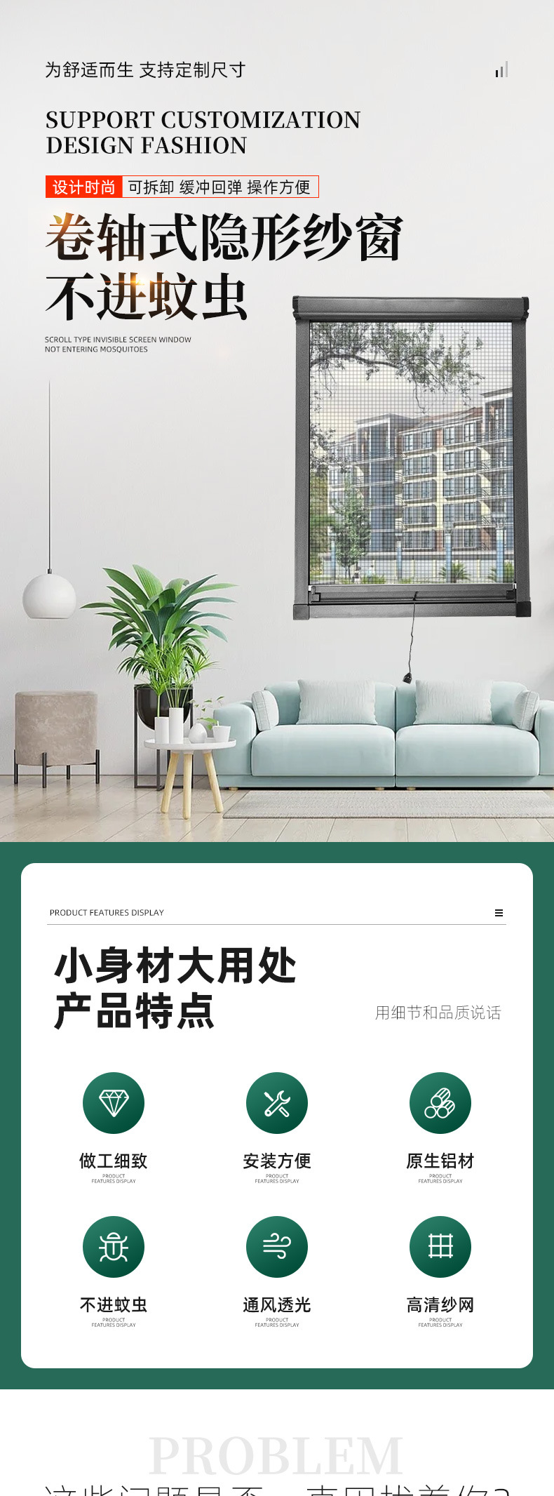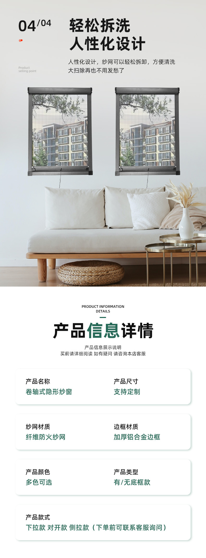 보이지 않는 금속 스크린 창 제조업체 푸시 풀 텔레스코픽 드럼 타입 위아래로 당겨 부서진 다리 알루미늄 합금 모기 방지 셔터 스크린 창스토어 가기