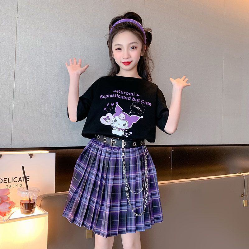 여자 대학 스타일 세트 퓨어 코튼 티셔츠 짧은 치마 인터넷 인기 JK 주름 치마 유행 투피스 세트스토어 가기