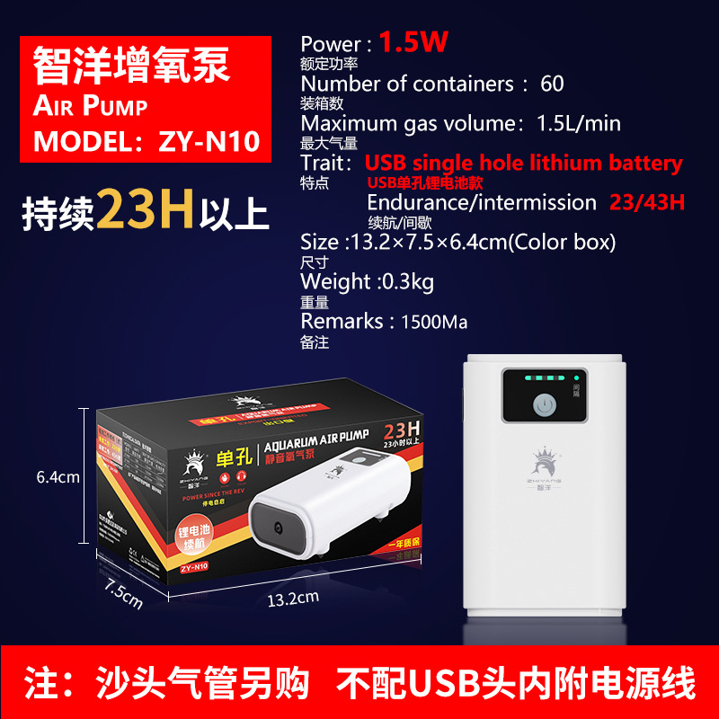 USB增氧泵鱼气泵 双层隔音车载锂电池家用户外携带垂钓鱼缸打氧机