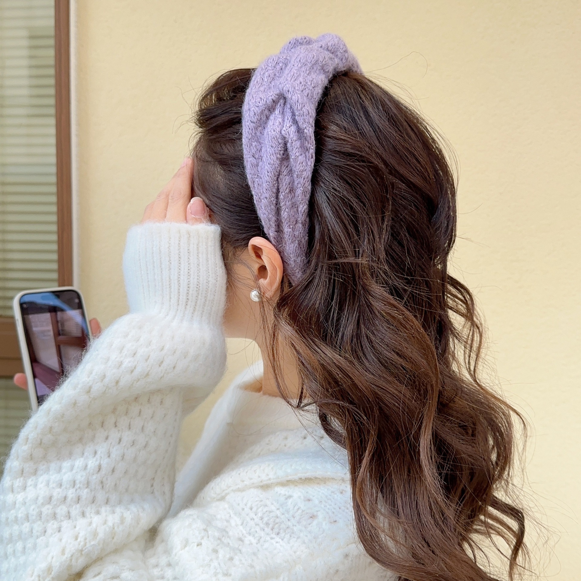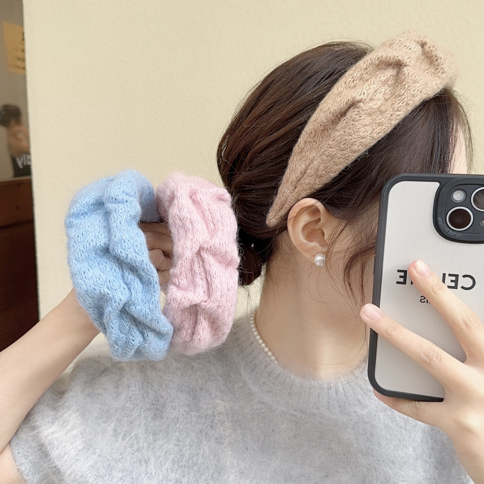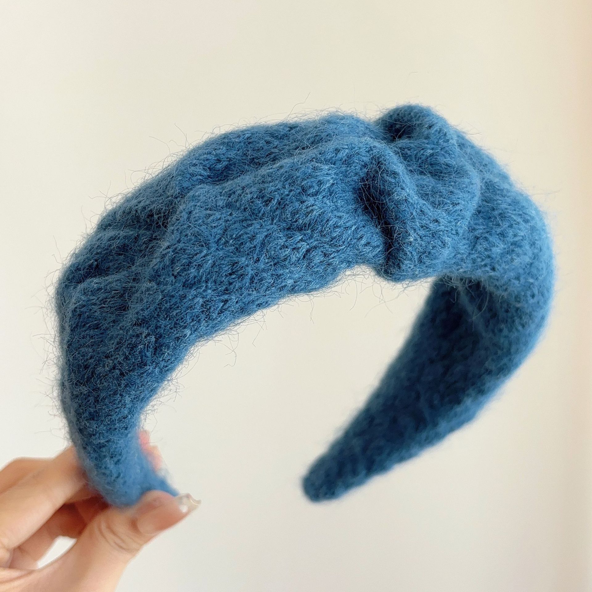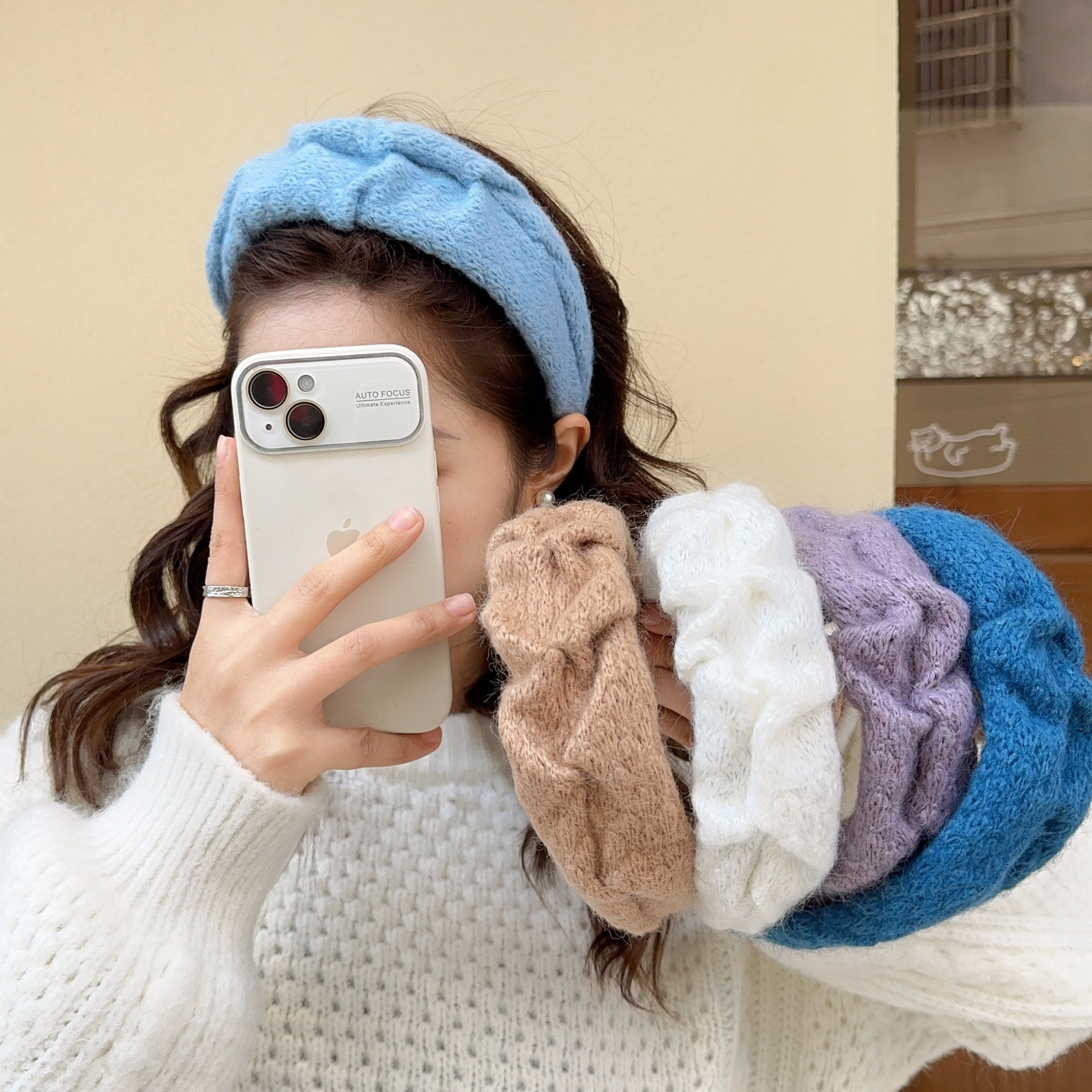 밀크 블루 시리즈 ~ 부드러운 찹쌀 주름 흰색 울 머리띠 여성 와이드 에지 하이 스컬 탑 고급 부드러운 머리핀 머리띠스토어 가기