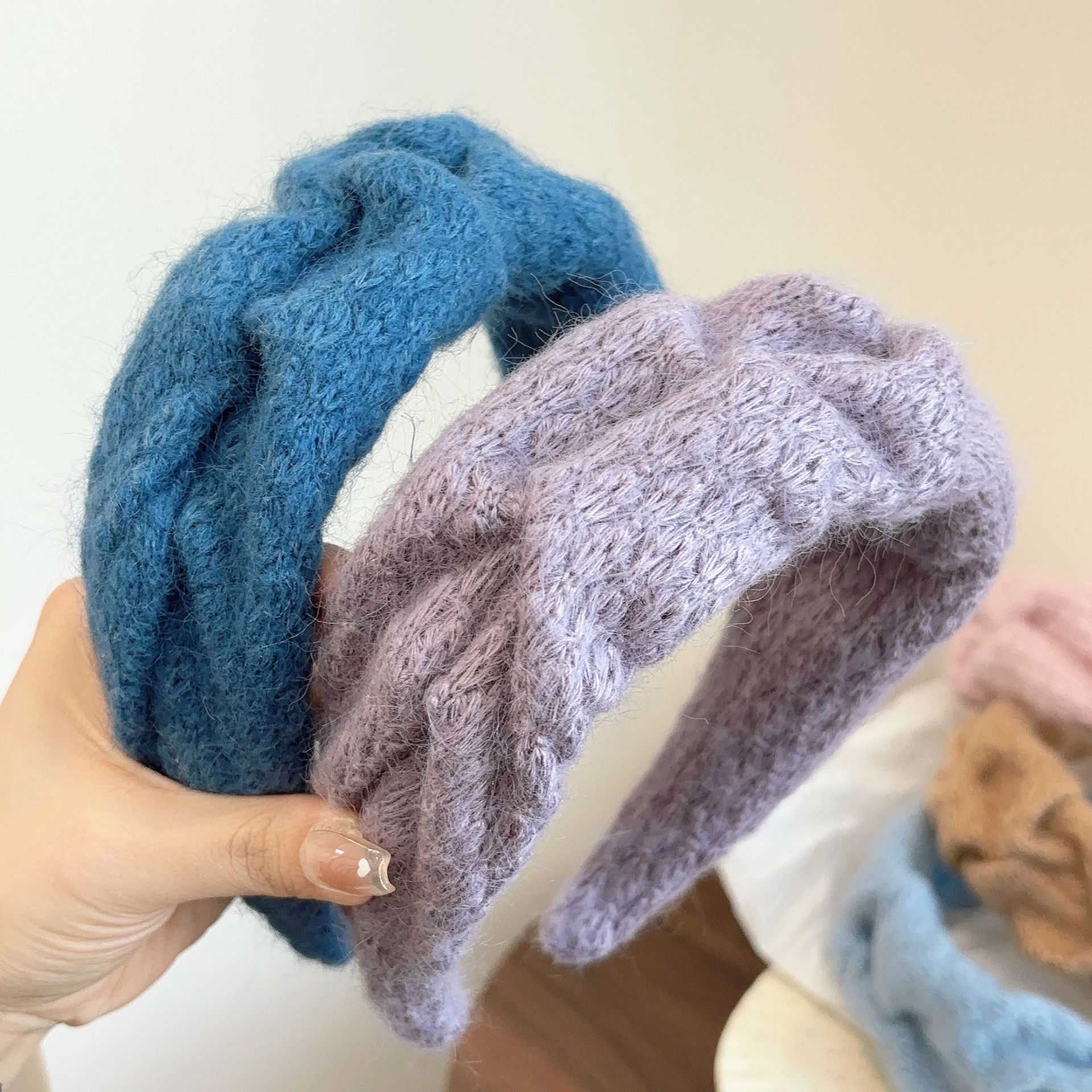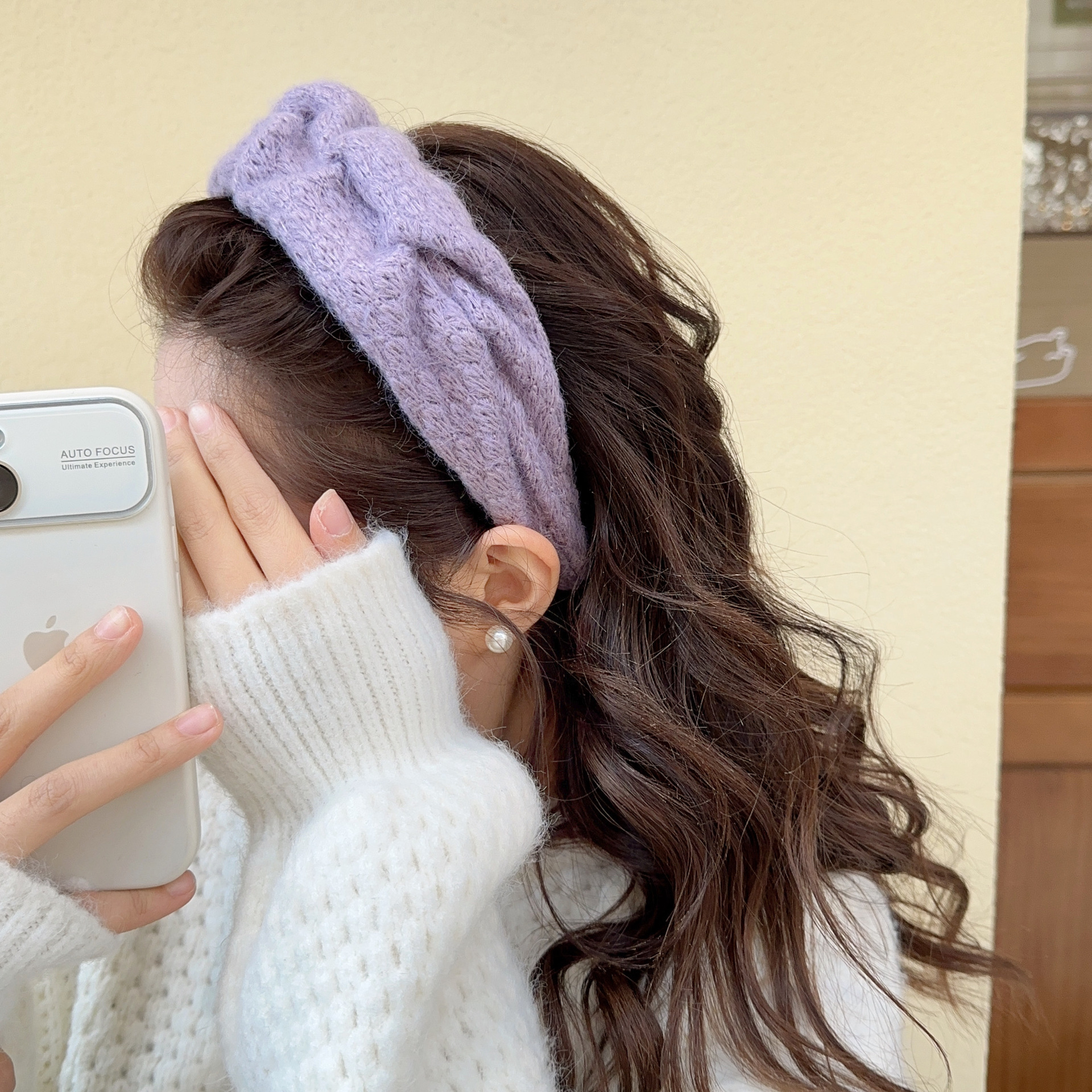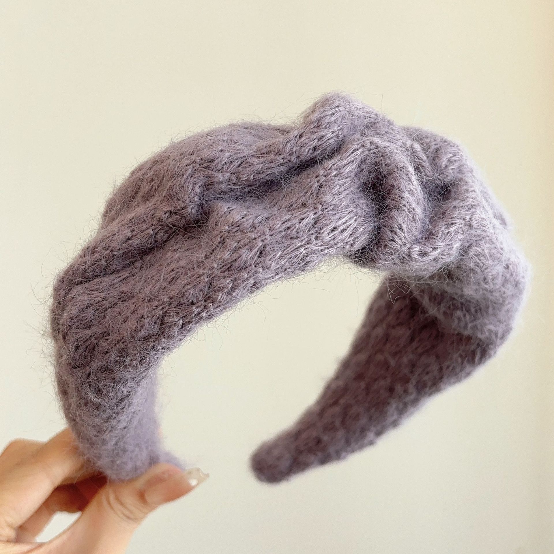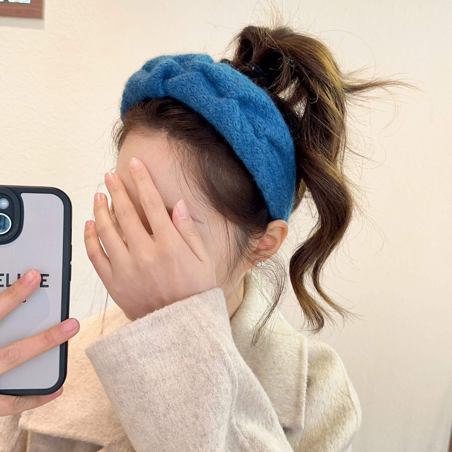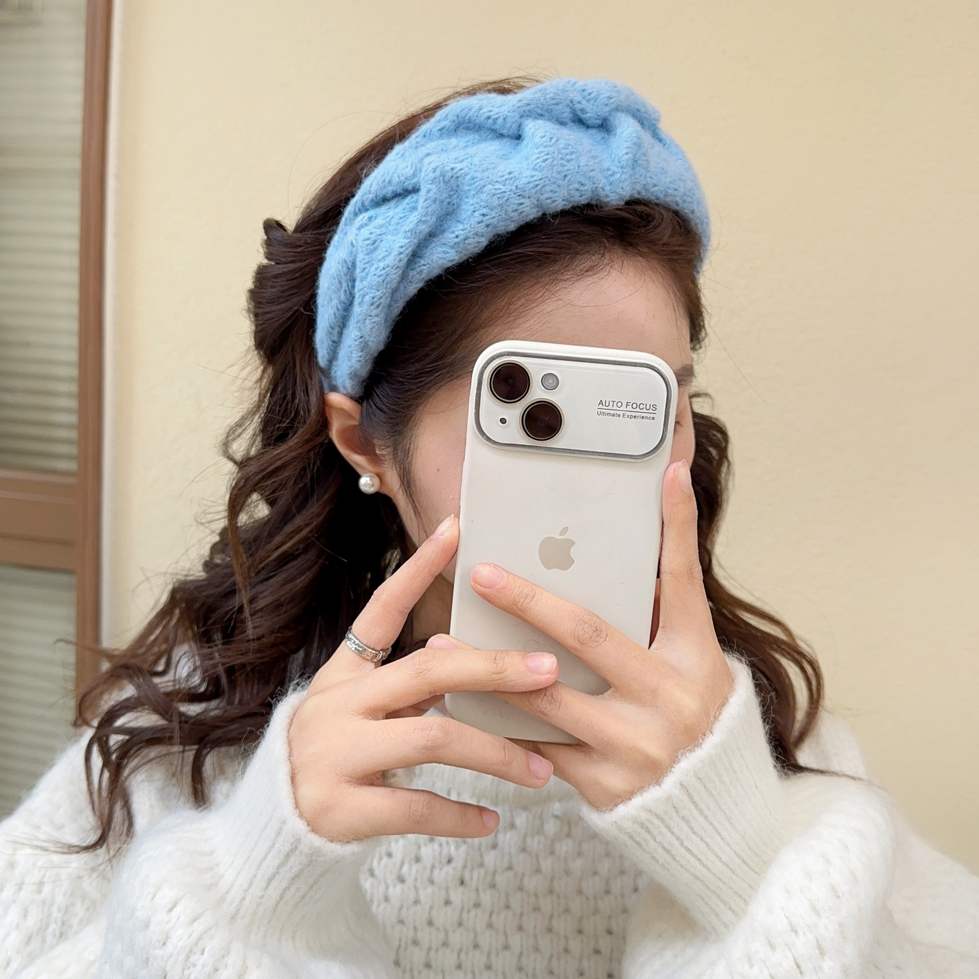 밀크 블루 시리즈 ~ 부드러운 찹쌀 주름 흰색 울 머리띠 여성 와이드 에지 하이 스컬 탑 고급 부드러운 머리핀 머리띠스토어 가기