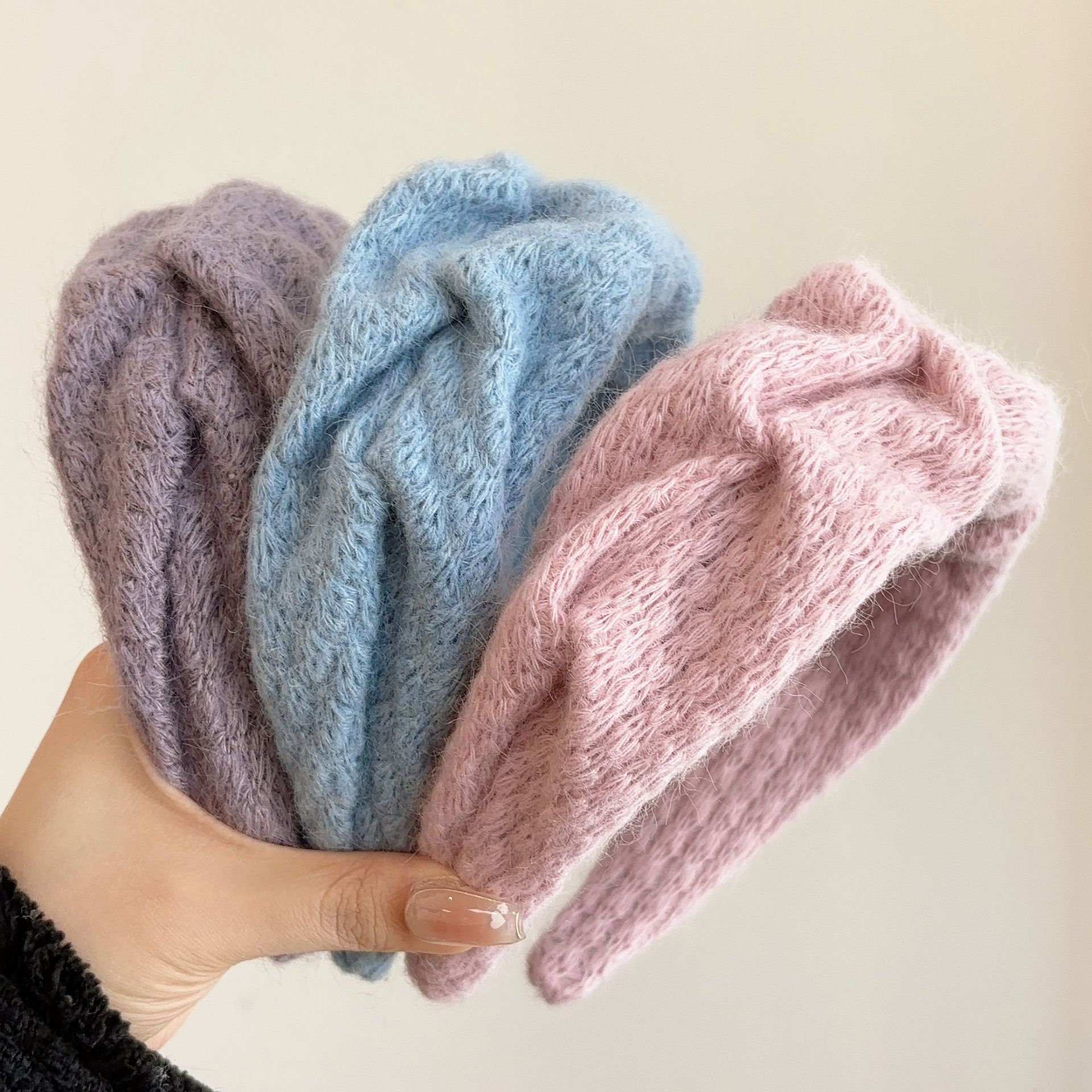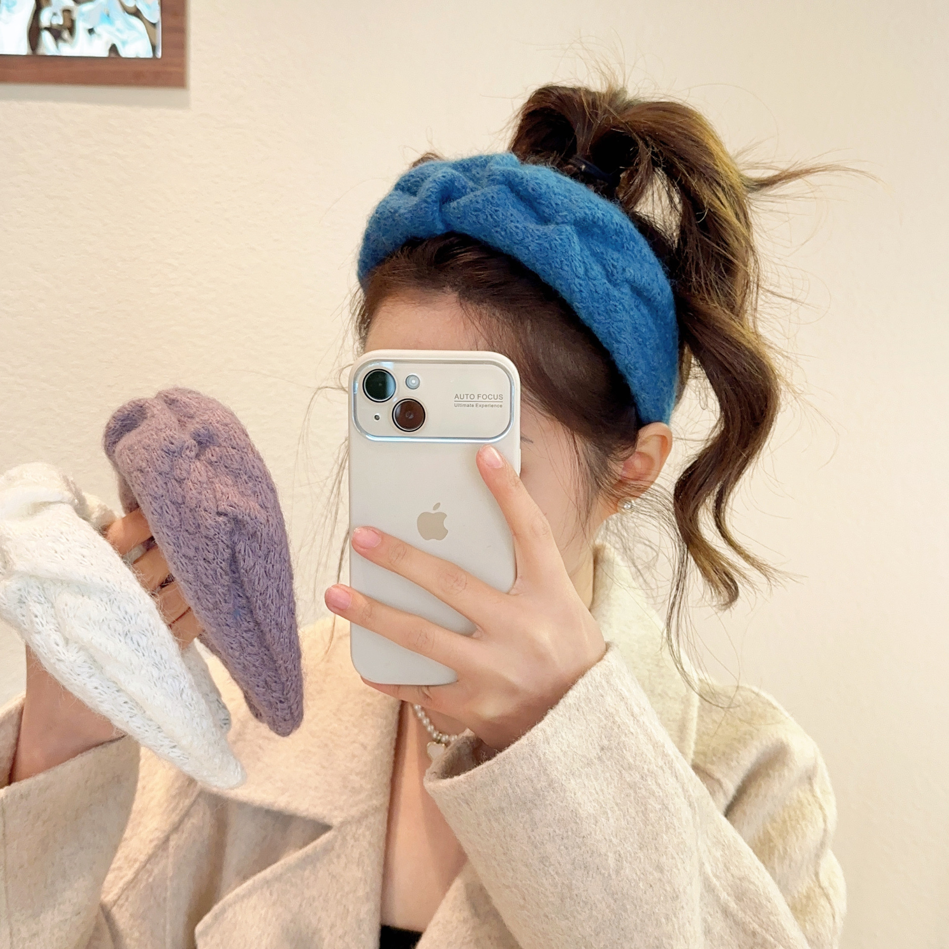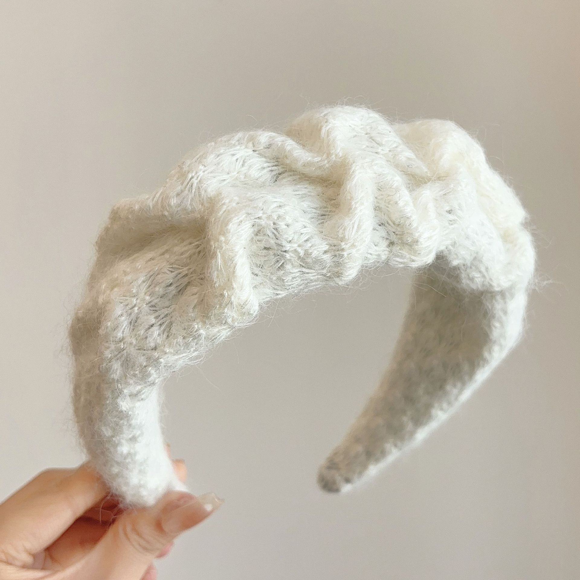 밀크 블루 시리즈 ~ 부드러운 찹쌀 주름 흰색 울 머리띠 여성 와이드 에지 하이 스컬 탑 고급 부드러운 머리핀 머리띠