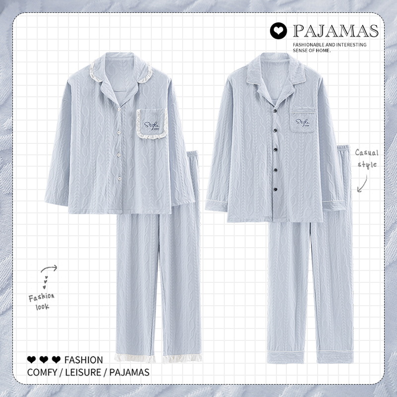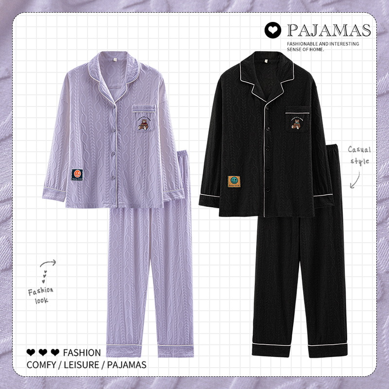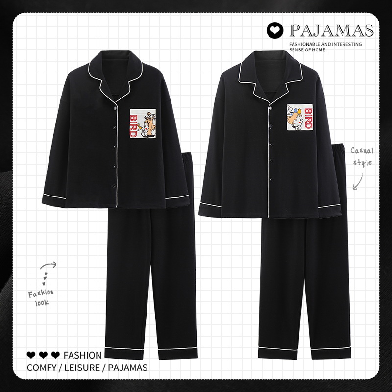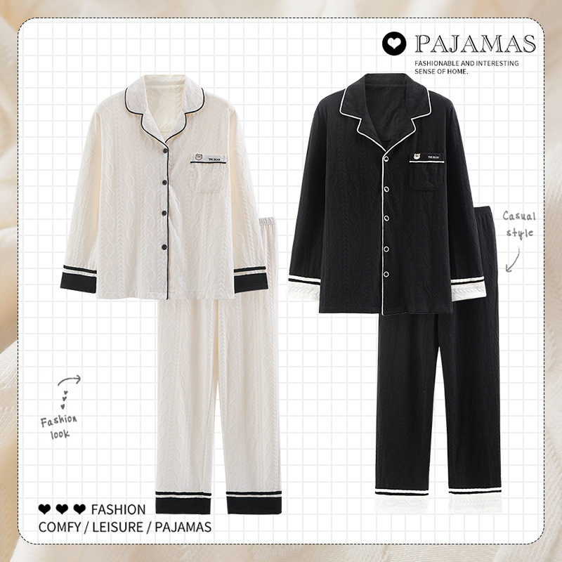 커플 잠옷 여성 긴팔 봄 · 가을 카디건 캐주얼 패션 고감각 남성과 여성은 가정복 밖에서 입을 수 세트스토어 가기