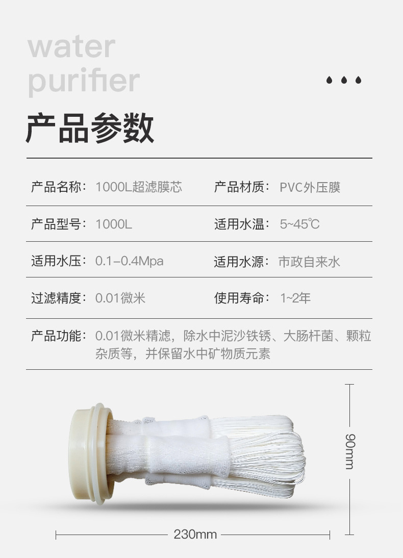 전체 집 정수기 중공 섬유 초여과 막 필터 요소 손 세척 막 스테인리스 파이프 라인 기계 필터 요소를위한 특수 필터 요소