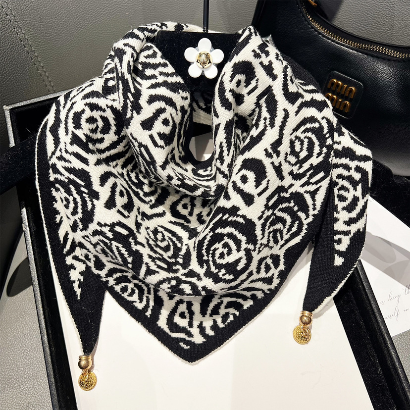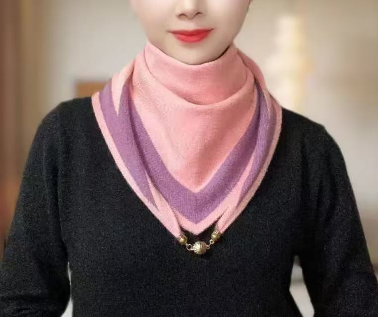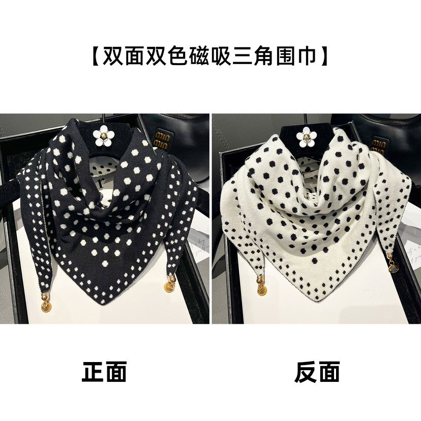 2025 뉴 밀라노 동백 가을 겨울 따뜻한 더블 컬러 마그네틱 버클 양면 니트 삼각형 수건 따뜻한 스카프