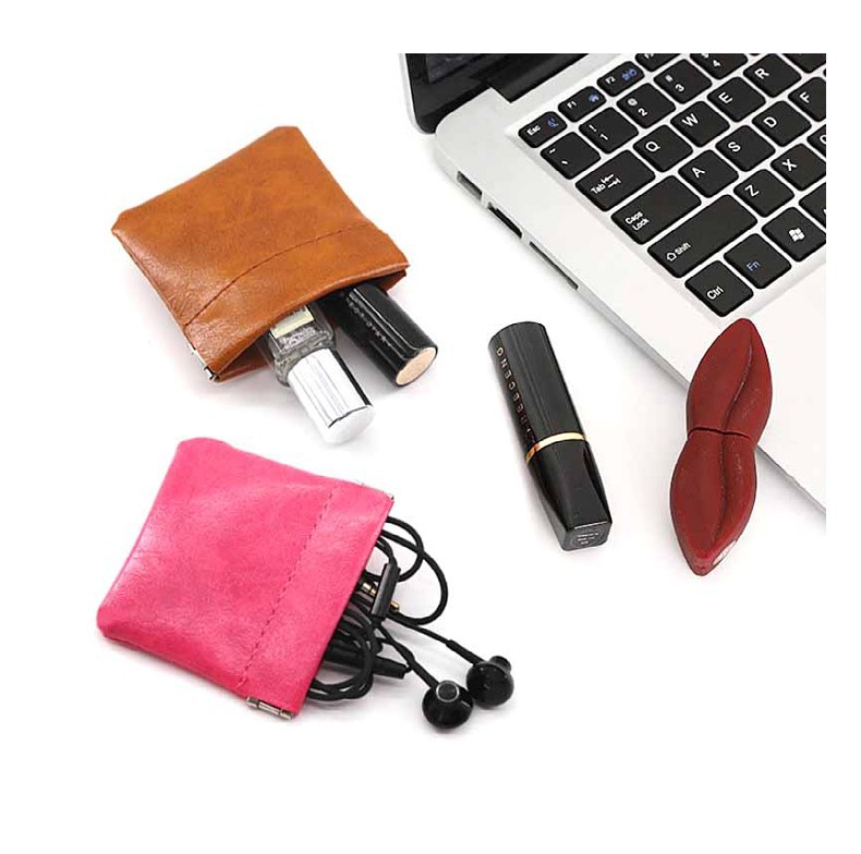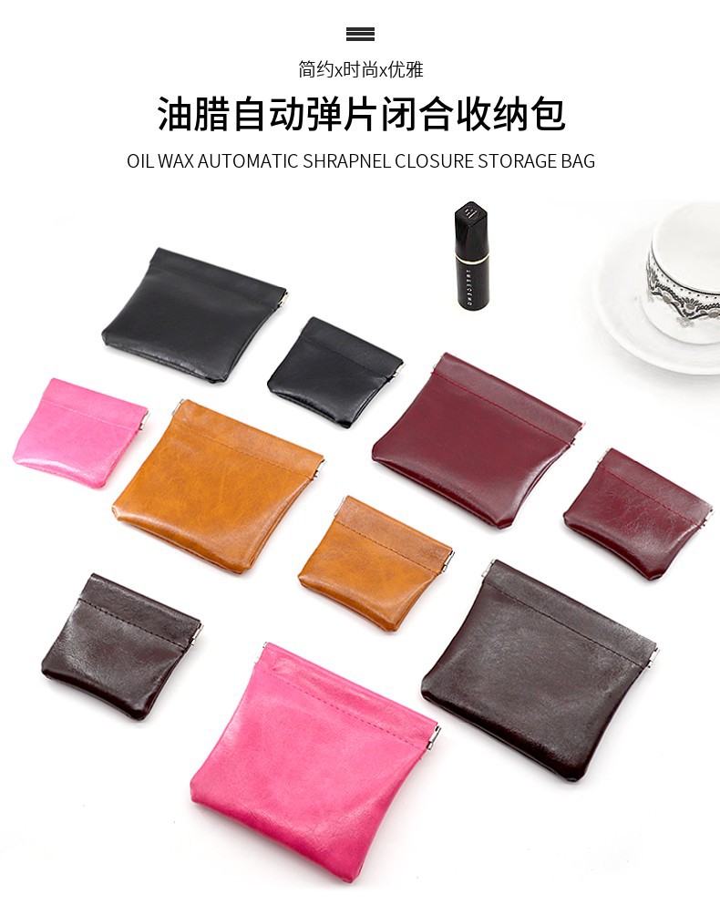 새로운 오일 왁스 가죽 보관 가방 여행 데이터 케이블 동전 보석 보관 가방 미니 자동 폐쇄 보관 가방