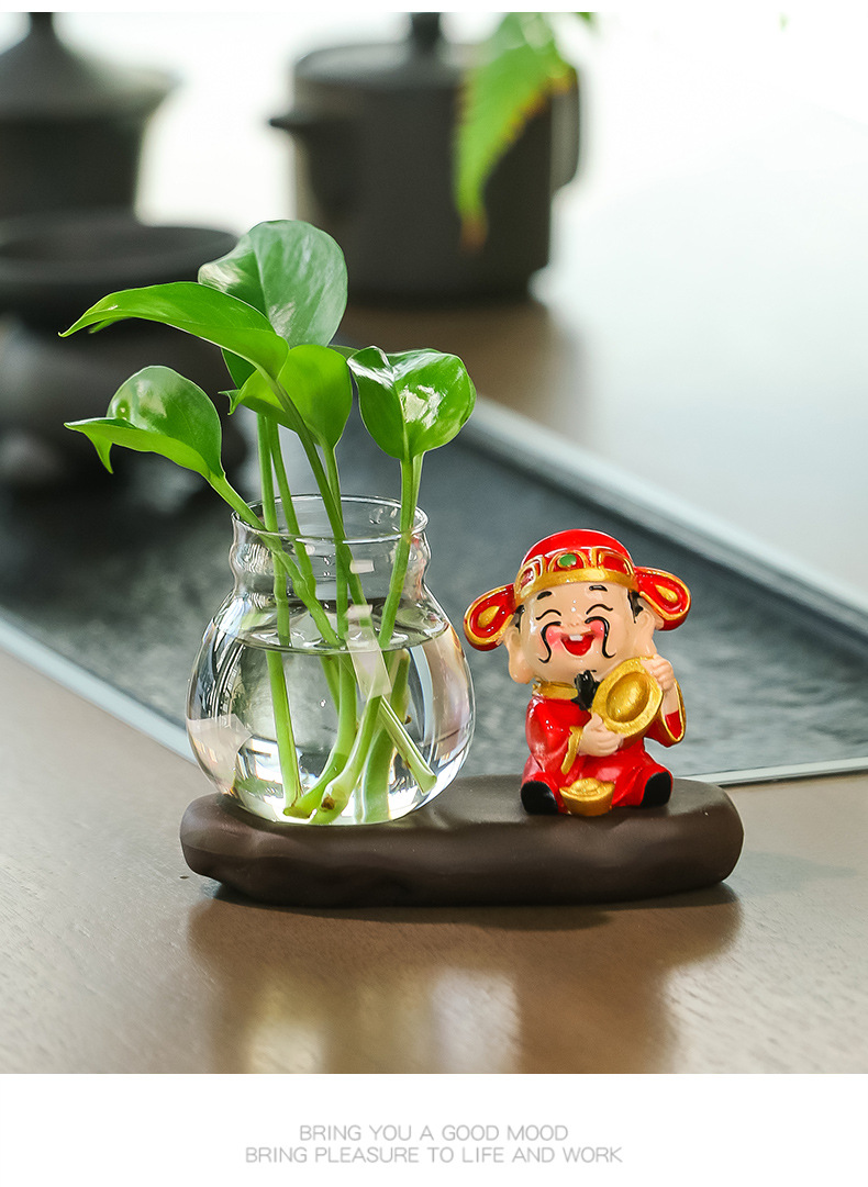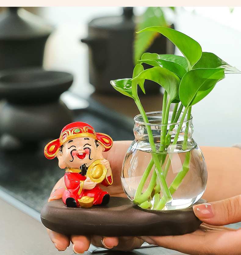 • 부의 신 [Ruyi + 골드 바] + 수경 꽃병