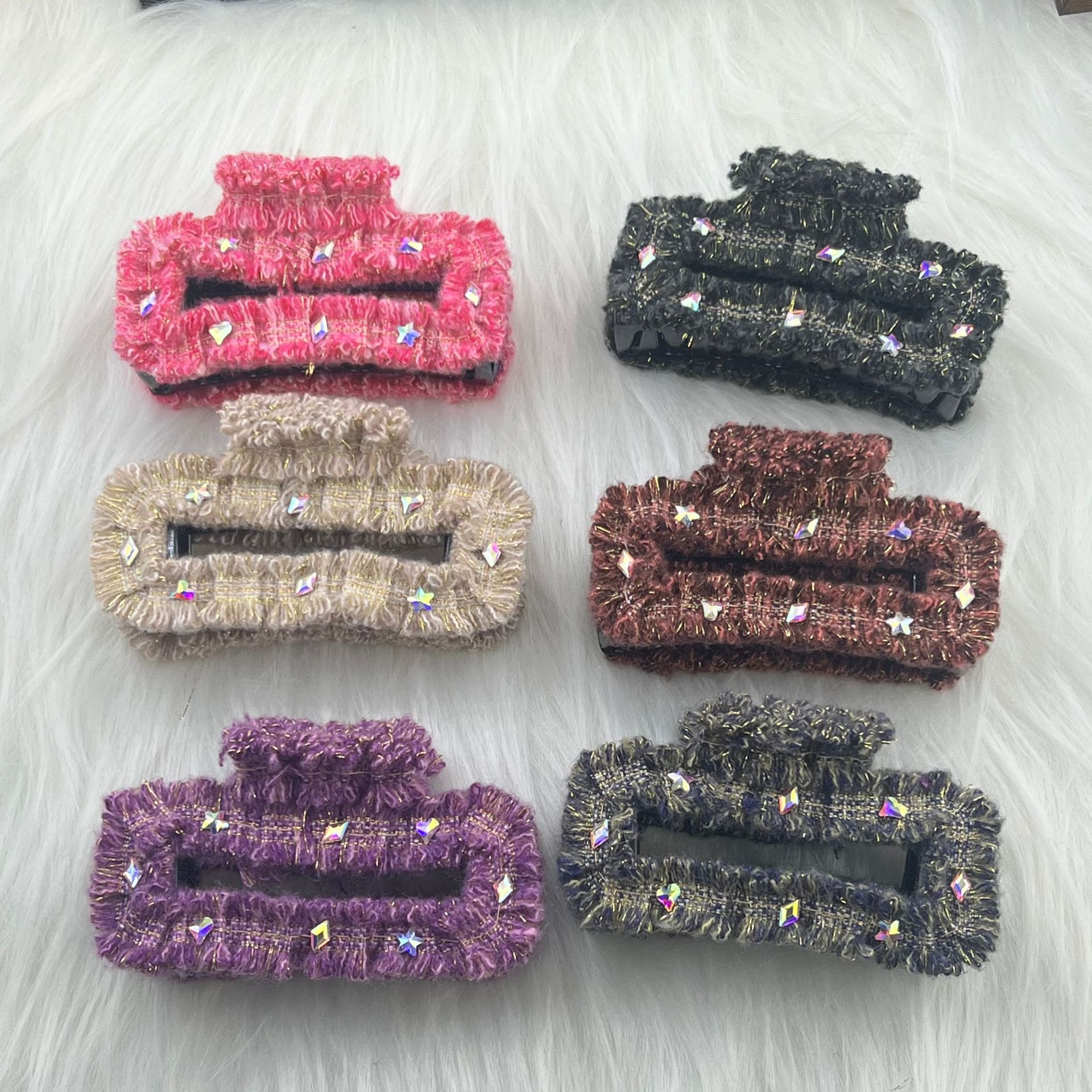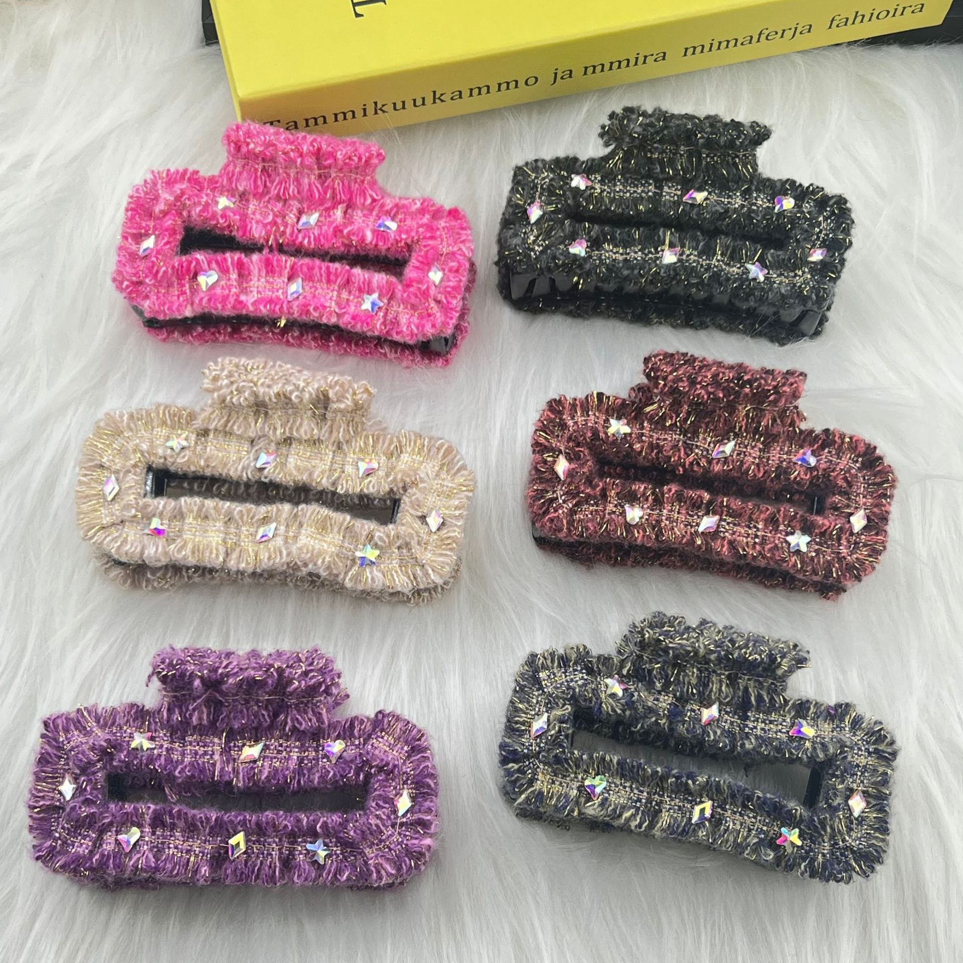 가을과 겨울 다채로운 리본 모조 다이아몬드 상감 패션 그리퍼 머리핀 간단한 올 매치 백 헤드 머리핀 상어 클립