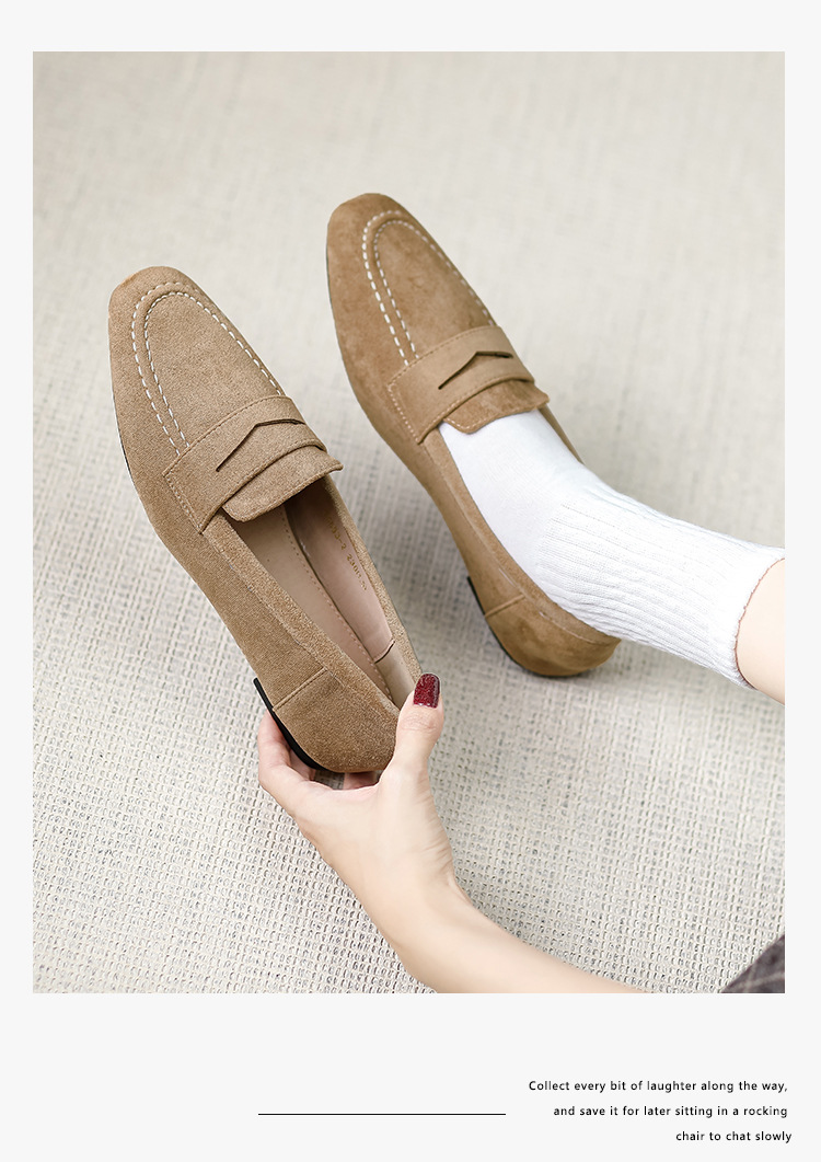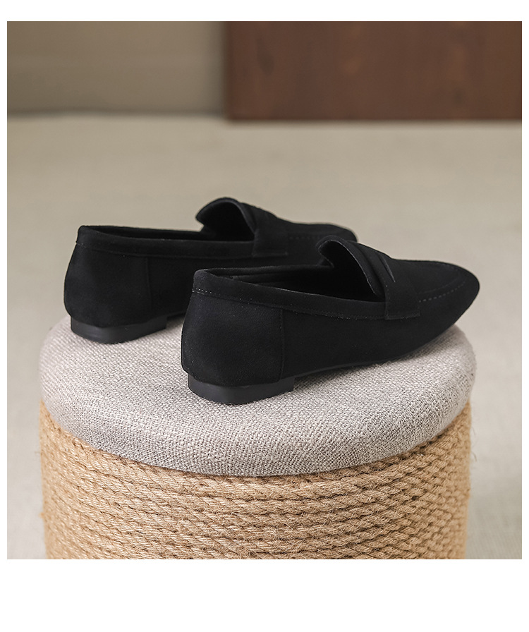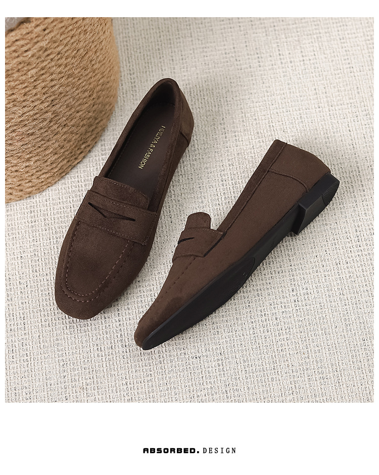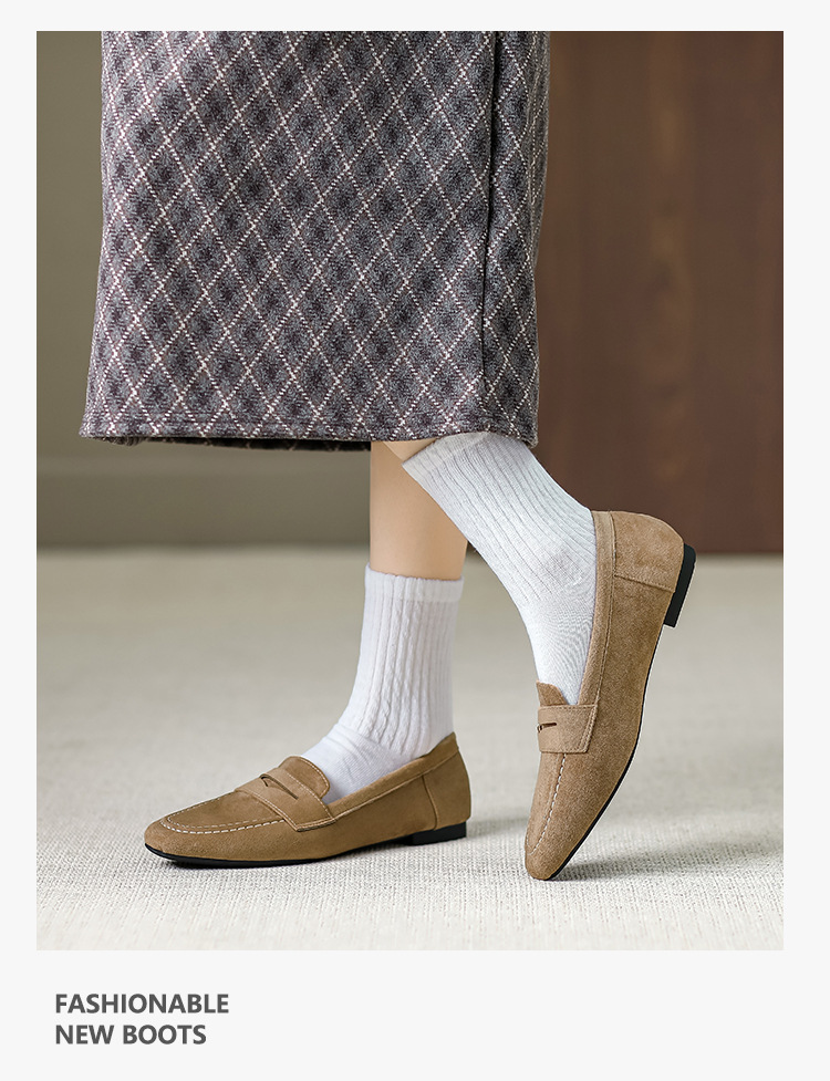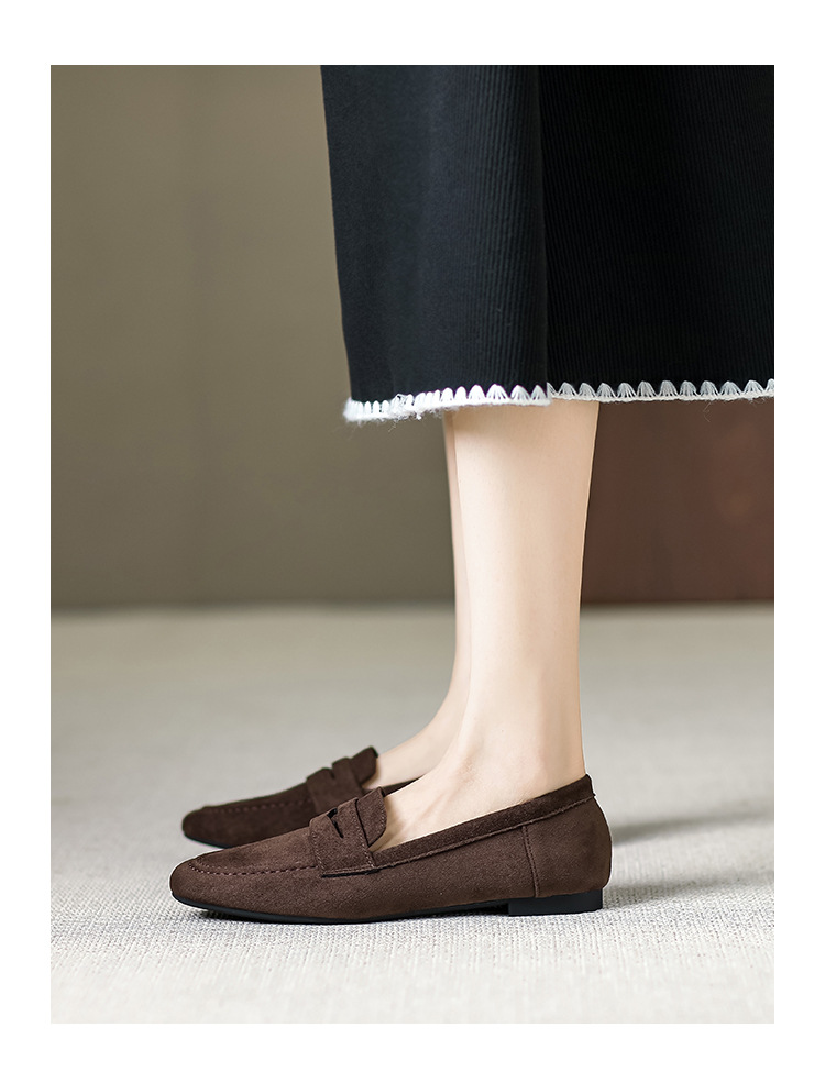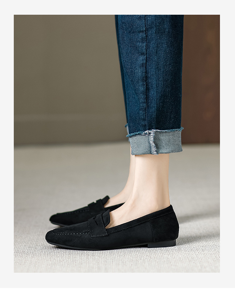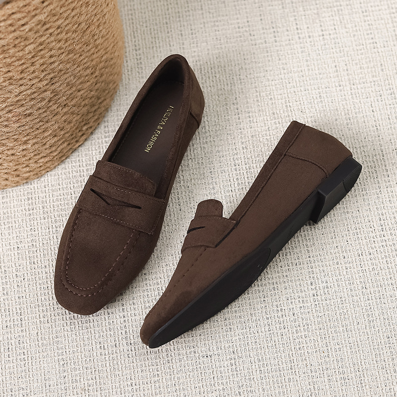 여성 신발 영국 가죽 신발 2024 새로운 겨울 빈티지 Frosted 거친 신발 여성용 로퍼 T5593-2