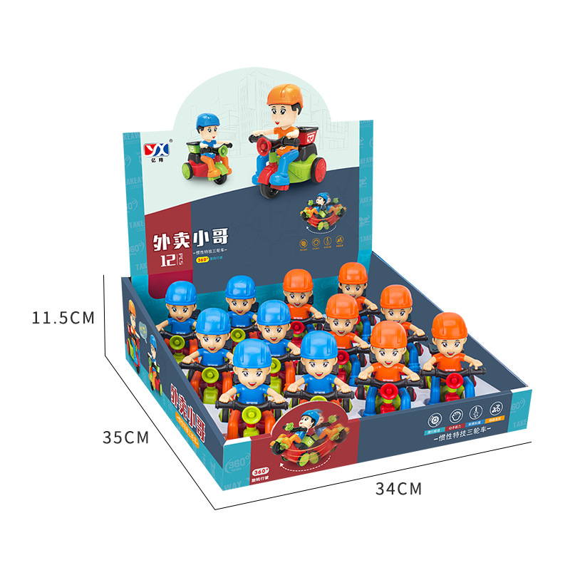 功能描述:外卖小哥双颜色组合、外卖箱可打开、惯性装置、轻推行驶