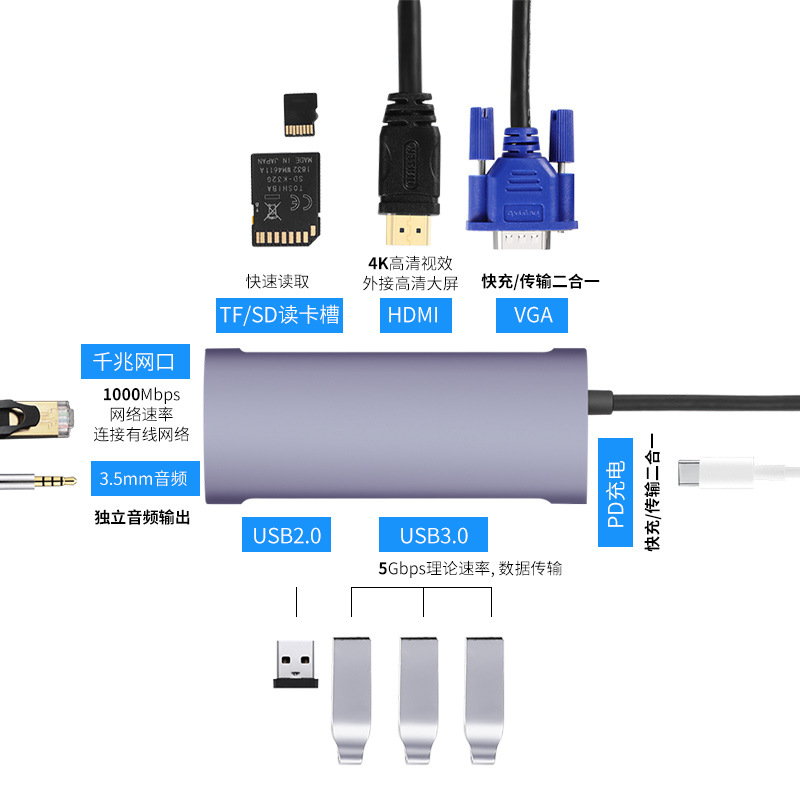 투명한 확장 도킹 스테이션 허브 12-in-1 다기능 도킹 스테이션 4K 고화질 화면 전송 컨버터 확장 도킹 스테이션 typec스토어 가기